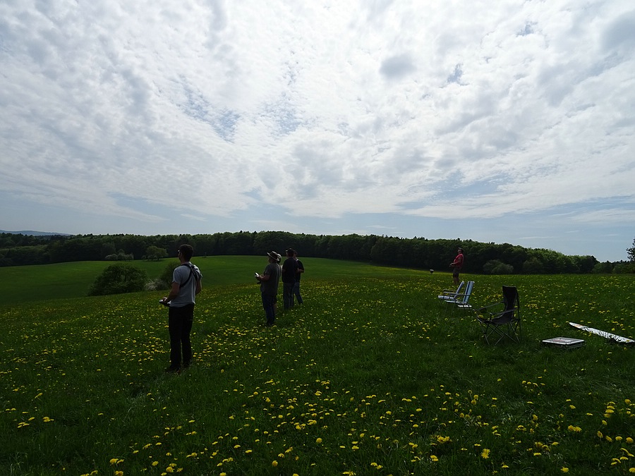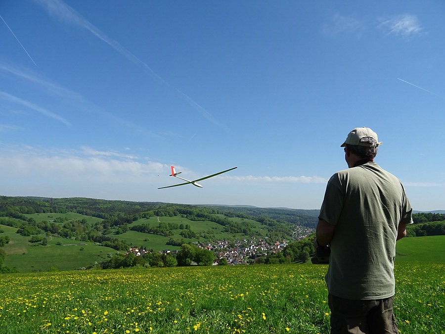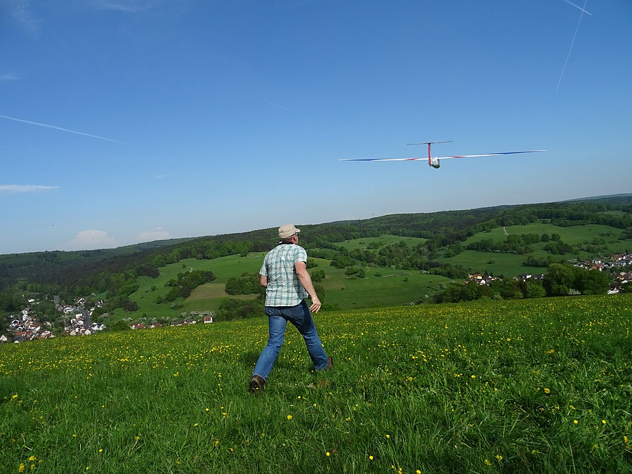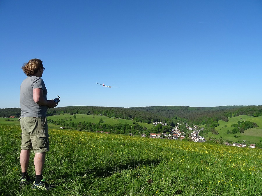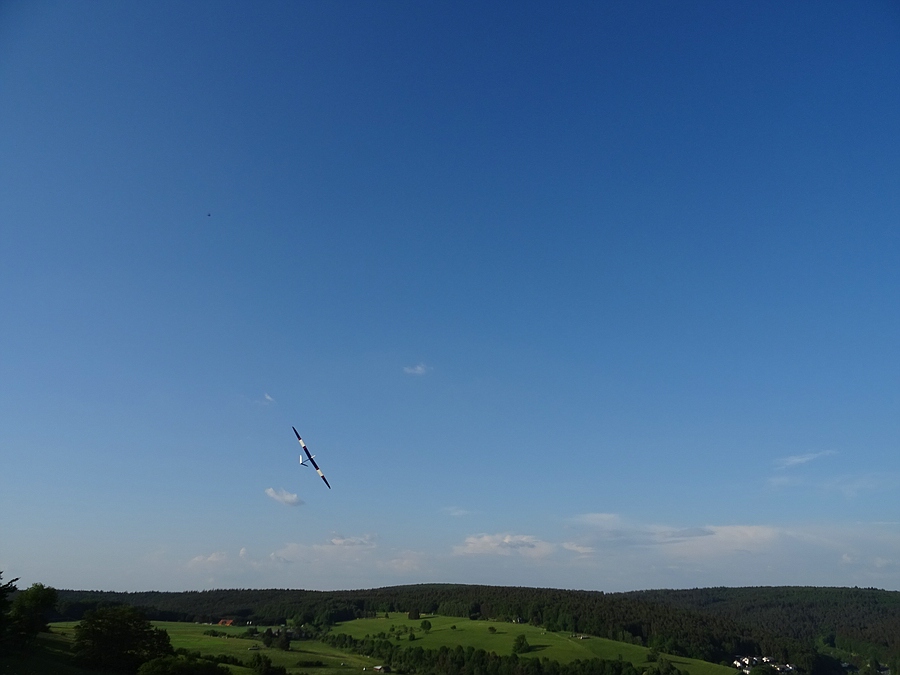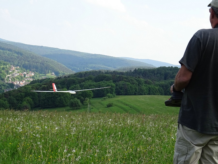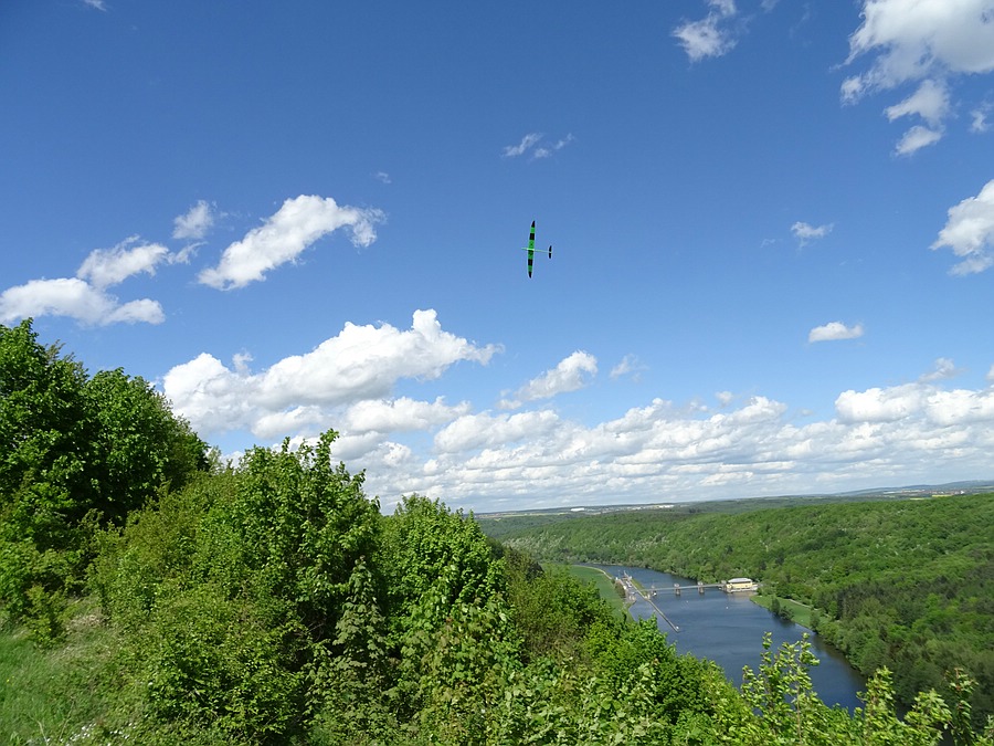 Dann heute also lieber fliegen....die Bedingungen waren Anfangs sehr unterschiedlich, neben guten Tragen gab es heftiges Saufen, aber im Laufe des Nachmittags wurde das Tragen immer gleichmäßiger und das Saufen immer seltener. Auch ein paar DS-Runden hinter den linken Bäumen konnte ich testweise drehen. Ein schöner Flugnachmittag mit den netten Kollegen, so kann das lange Wochenende weiter gehen