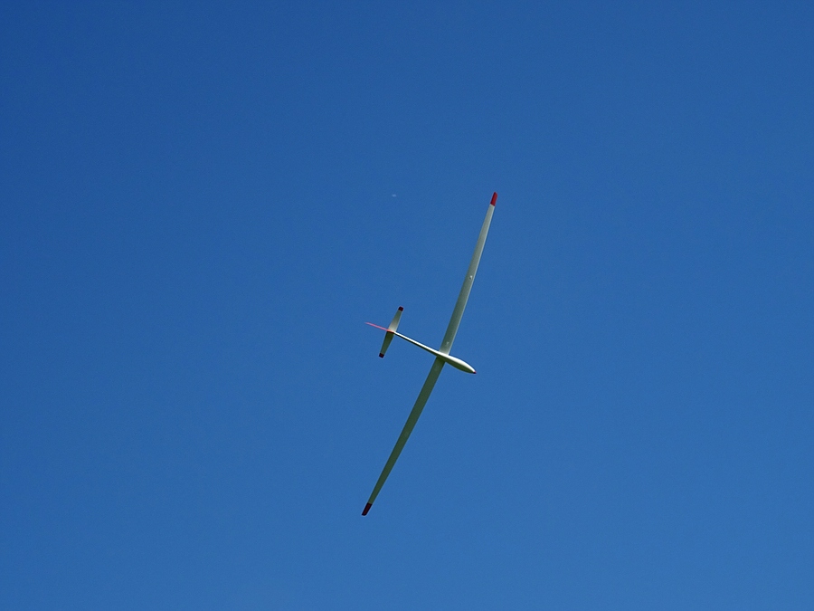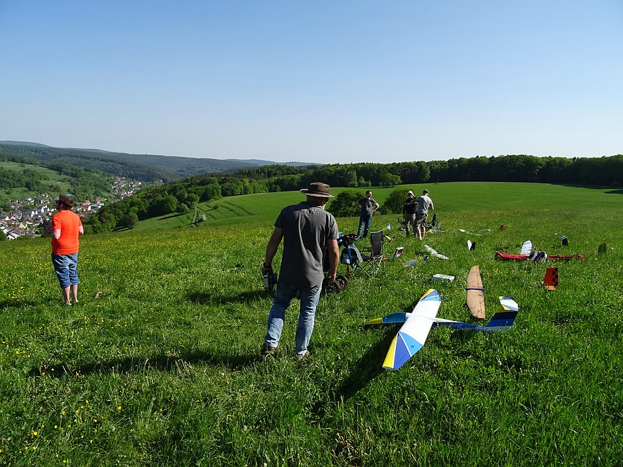 Bei traumhaftem Wetter war alles geboten, was das Modellsegelflieger - Herz begehrt: Von schwachen Bedingungen mit der Gefahr von Absaufern, bis hin zu brachialem Steigen. Ebenso vielfältig die eingesetzten Modelle: Von ganz klein ( Mini -Rock ) bis zur 5m Diana gab es Zweckmodelle und Scaler zu sehen. Ein interessanter Nachmittag mit reichlich Flugzeit