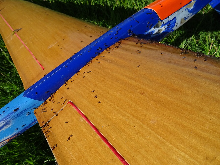 Es war auch allerhand Wildgetier zu sehen, Falken, Dohlen Rotmilane, Rehe und Elmar hatte sogar einen kompletten Ameisenhaufen im Flieger, dem es heute dort besser gefiel als Gestern in seinem Senderkoffer