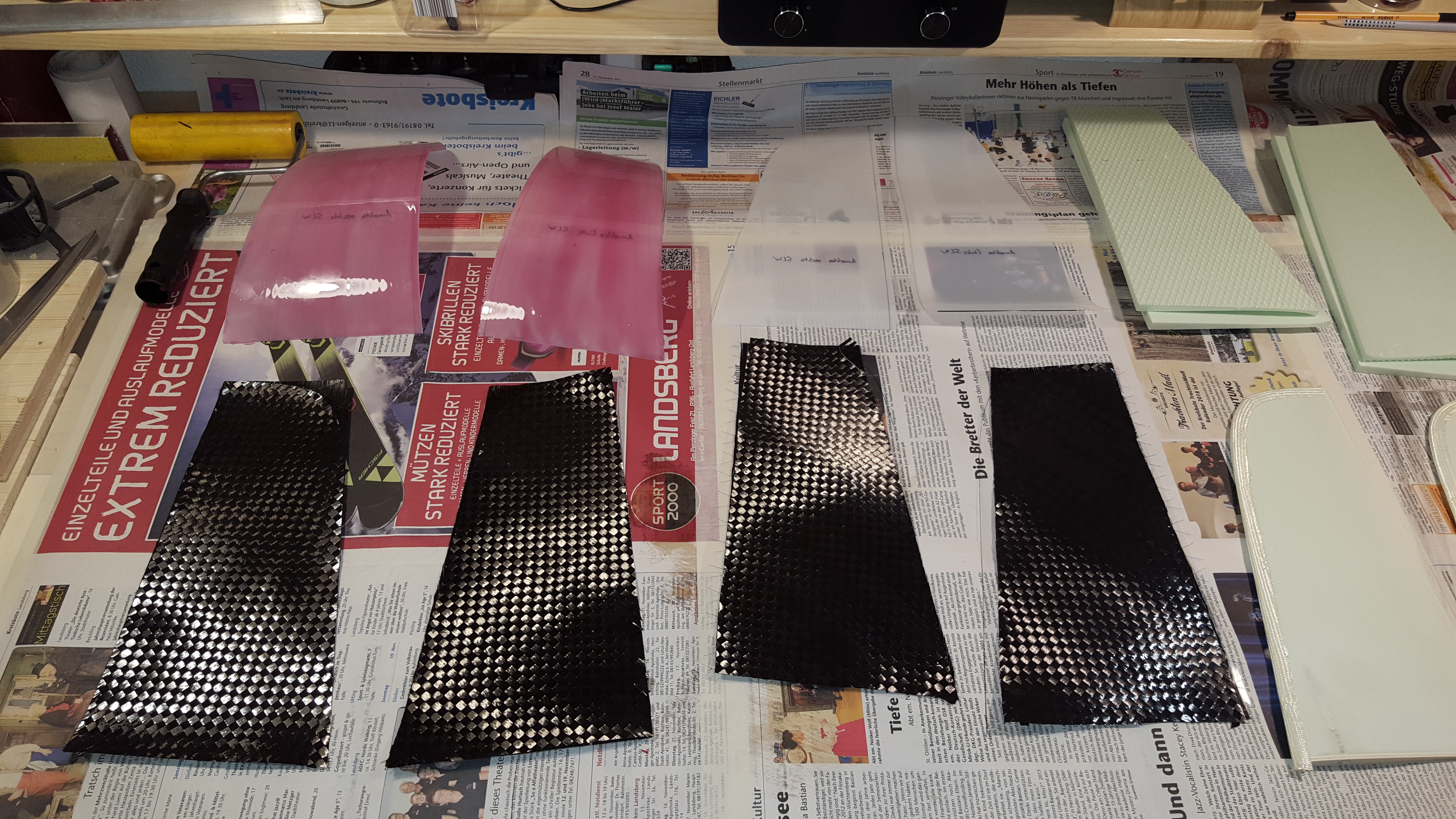 Da ich zum ersten Mal das Vakuumbagging mit Styrokern umsetze wollte ich das ersteinmal mit den Seitenflossen probieren.