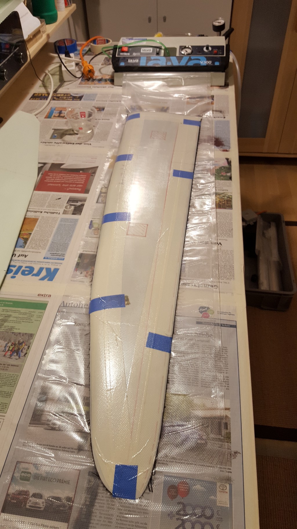 Bisher habe ich nur die Balsateile meiner EPP Flügel mit CFK vakuumgebagged...