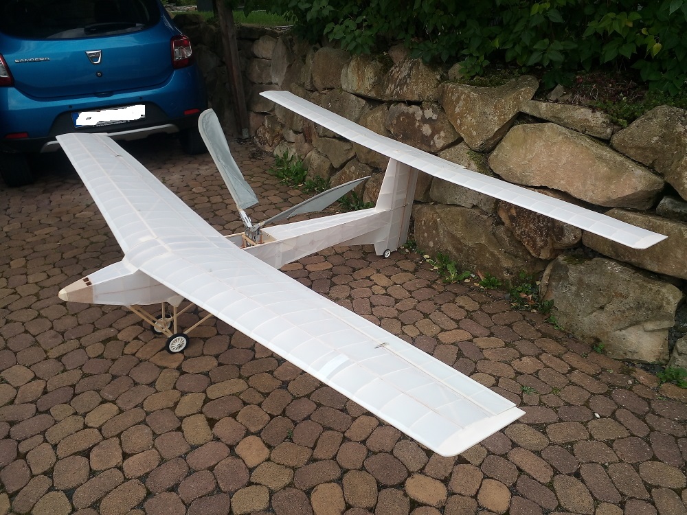 Am Donnerstag wieder ein Flugversuch – diesmal mit Motor und den „großen“ Originalschwingen.