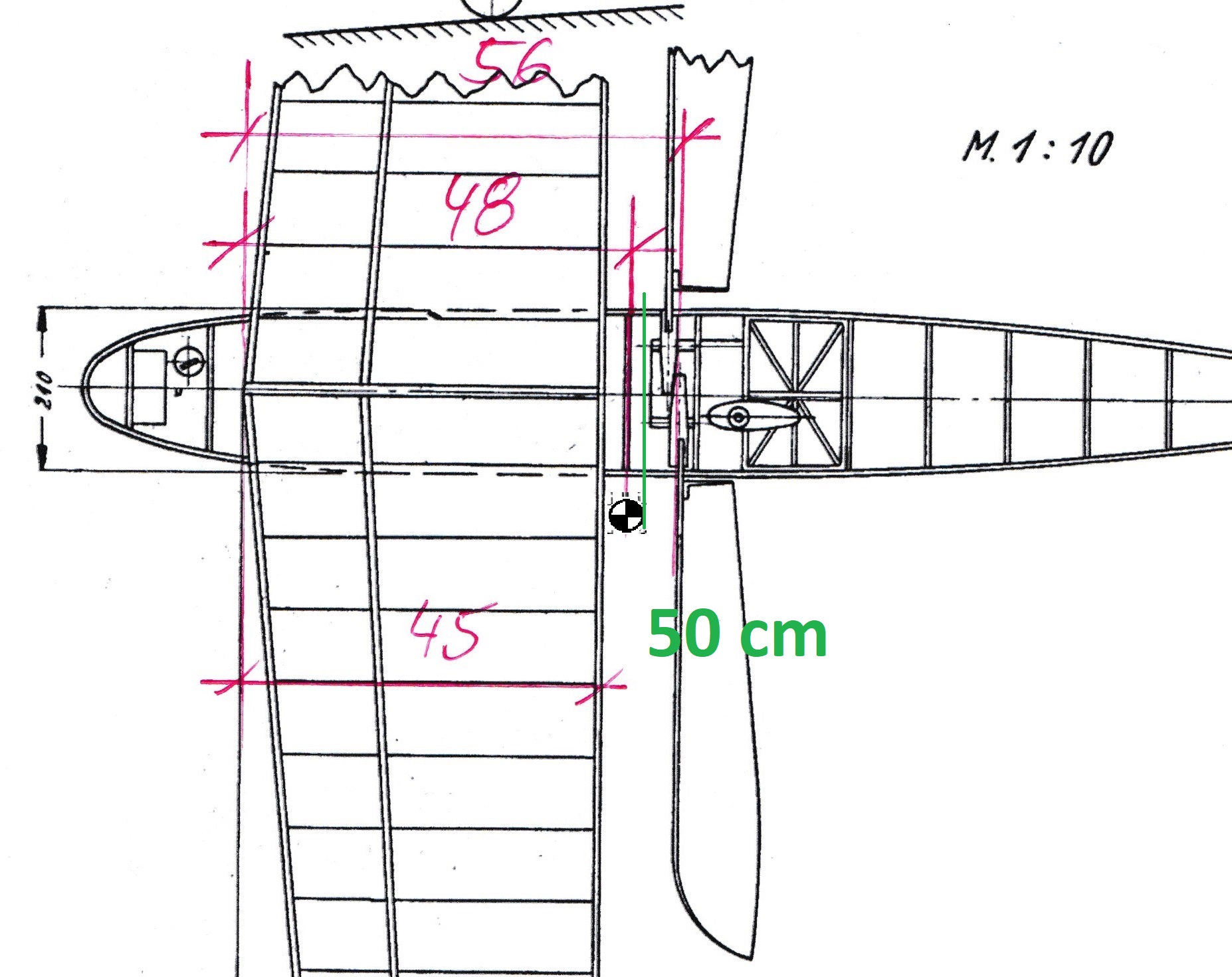 So also Schwerpunkt auf 45cm verschoben (+1kg) und Höhenruderflosse ca. verdoppelt.
