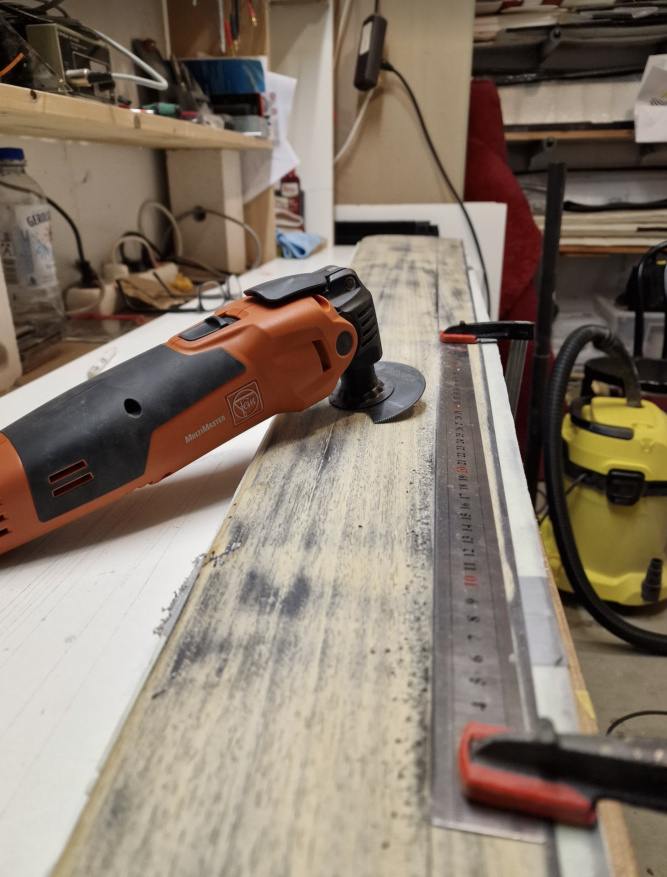 Die Unterseite (Scharnier Seite mit dem breiten Bosch Blatt gearbeitet)