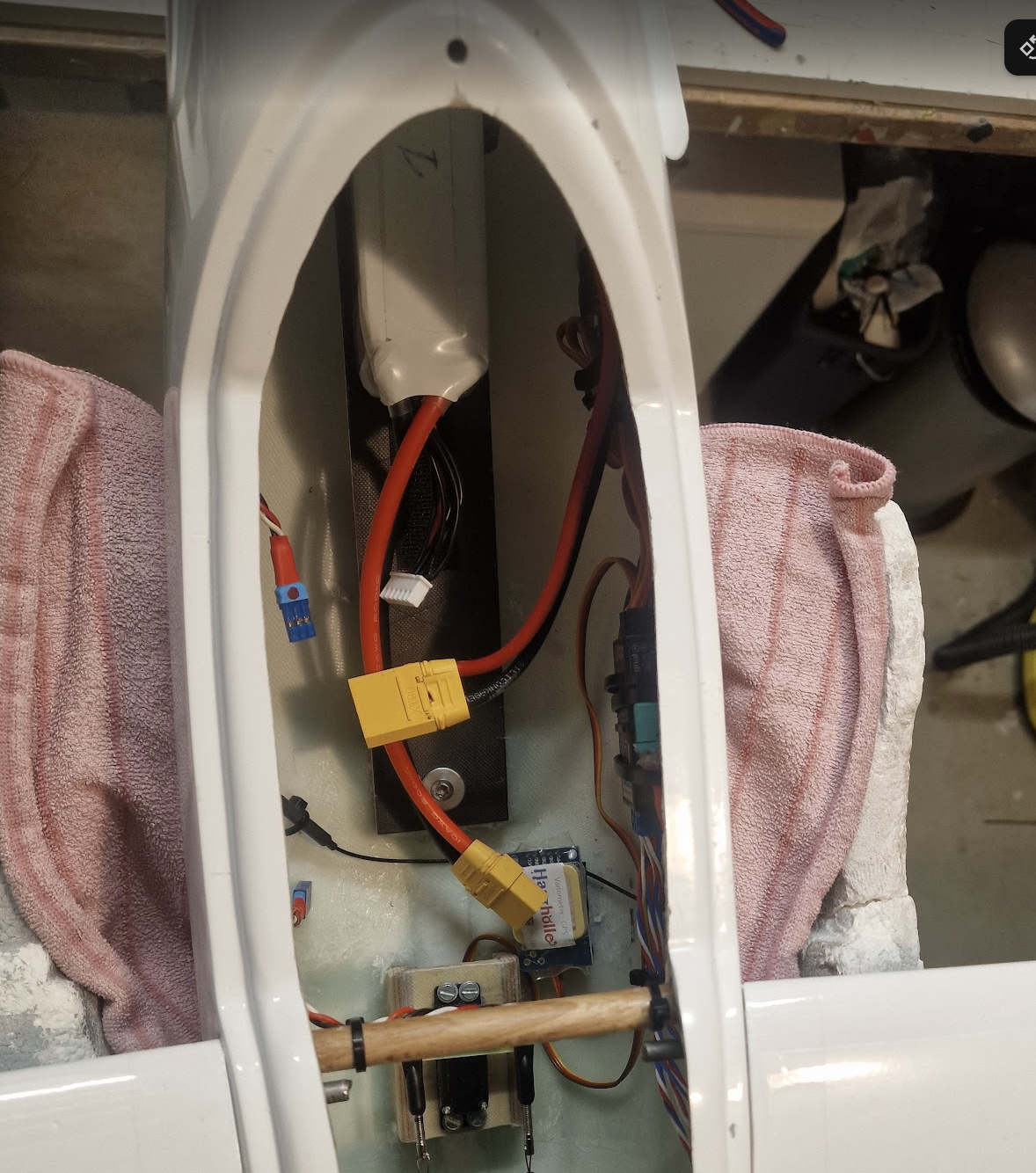 Das Thema mit dem 2 mm Stahldraht hab ich mit Chris ausgiebig diskutiert - am Ende führte kein Weg an der Lösung mit den Servos im Leitwerk vorbei...