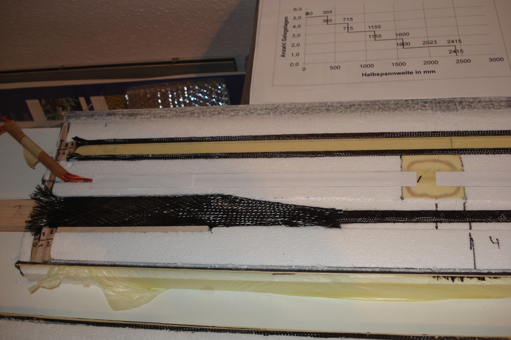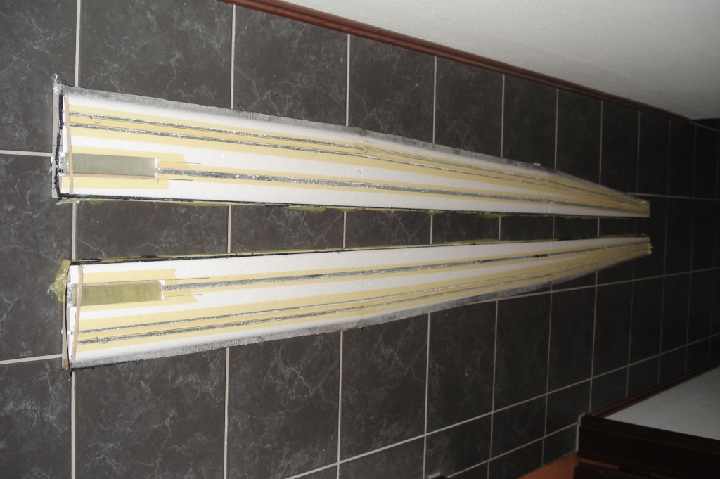 Nach dem Verschleifen werde ich wohl bei ca. 950g / Seite landen. Ich denke das ist für knapp 5m Spannweite ein akzeptabler Wert.