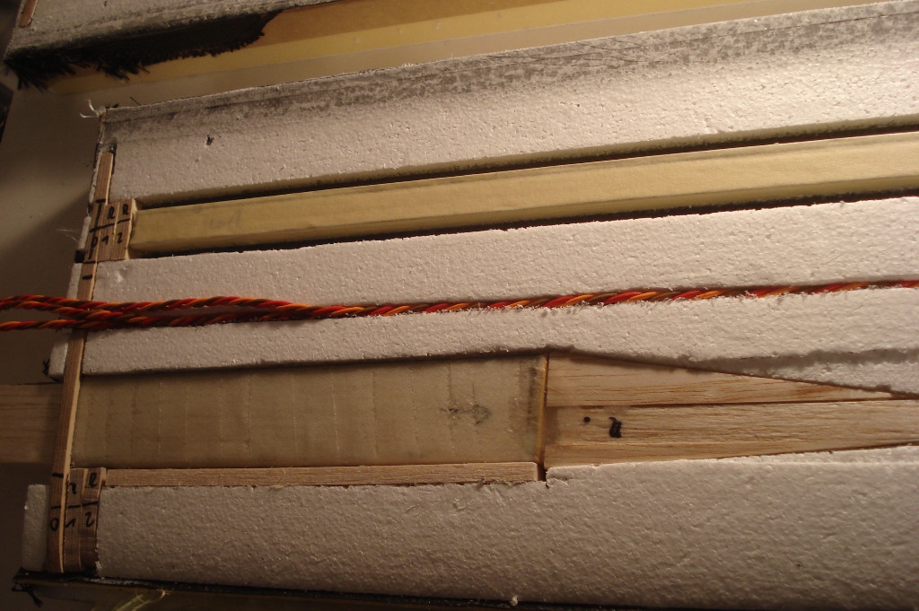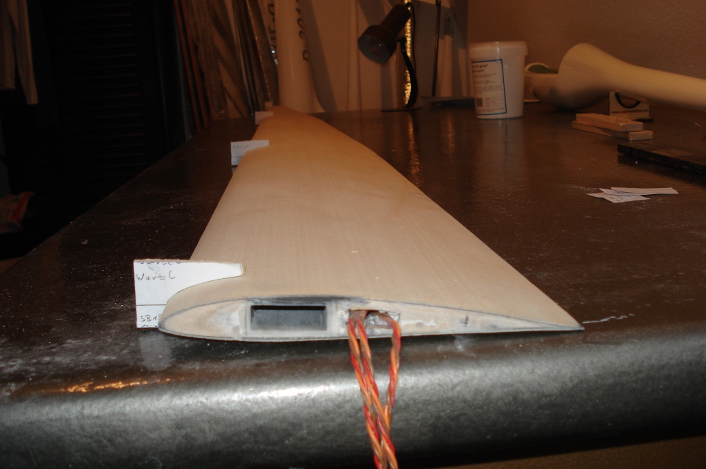 Einen breiten Holsteg kann ich mir bei den duennen Fluegelchen sowieso nicht leisten, dann wuerde es mit den Servos zu eng werden...