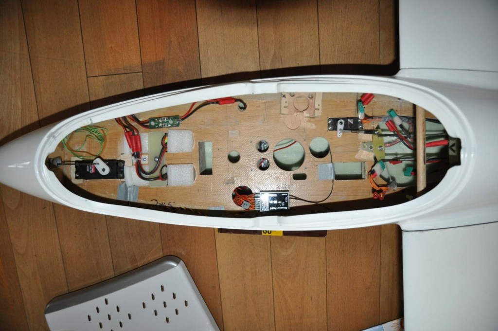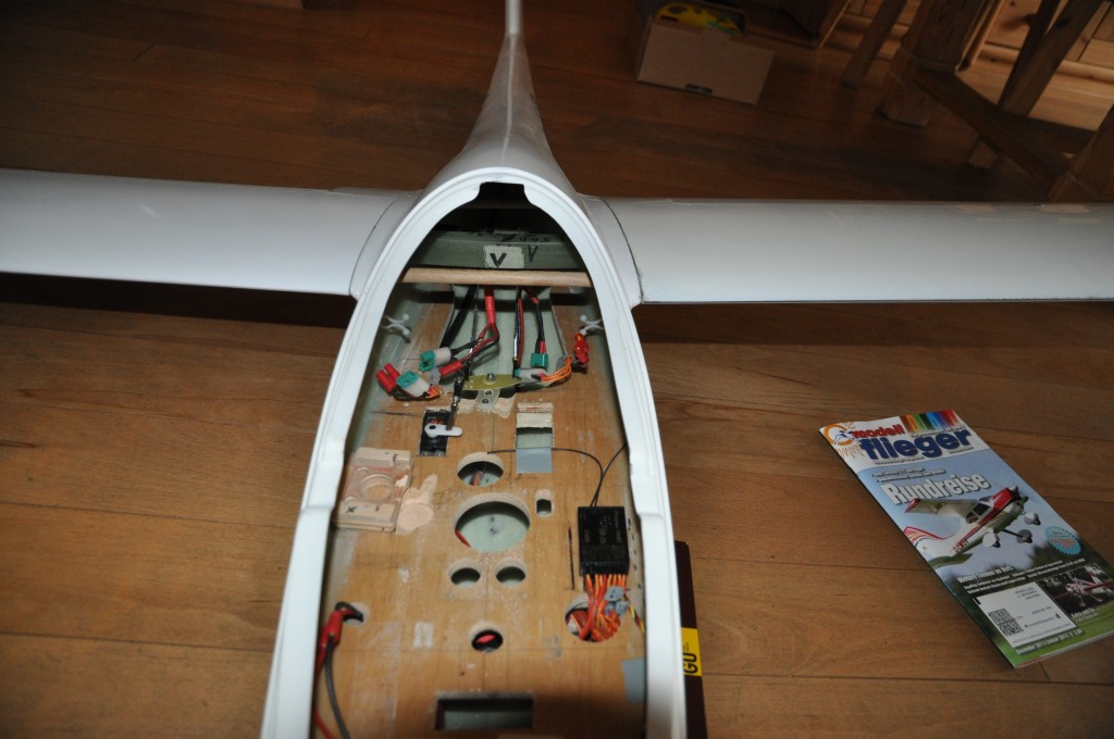 Jetzt noch die Servoabdeckungen an den Flächenservos, das Gegengewicht an der re. Fläche und ab gehts. Ich werde dann wieder berichten.