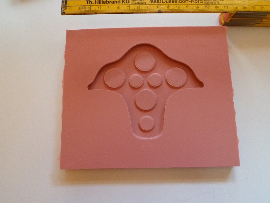 Die Ruder sind jetzt mit Dichtlippen aus Mumpe versehen. Das war ein ziemlicher Krampf, denn 1. sind meine Stege zu dicht beieinander und zweitens hatte ich meine Mumpe zu wenig fließfähig eingestellt. Nach mehrmaligem Nacharbeiten ist es aber trotzdem noch einigermaßen geworden.