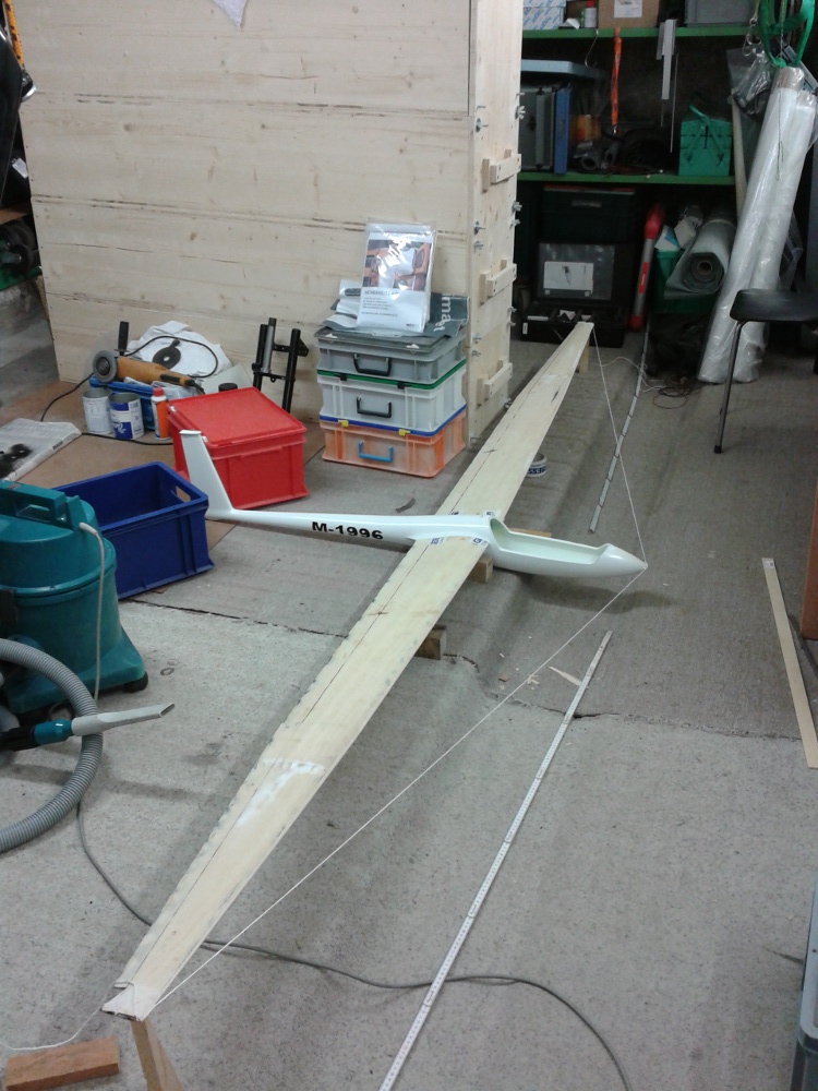 Morgen: Flügel schleifen, bespannen und Höhenruder ausrichten