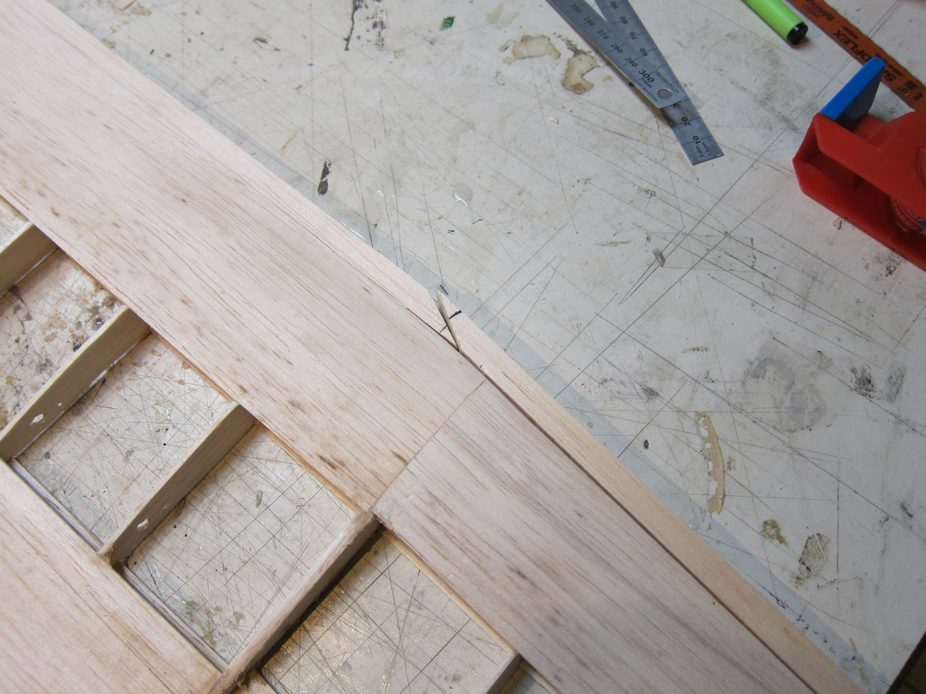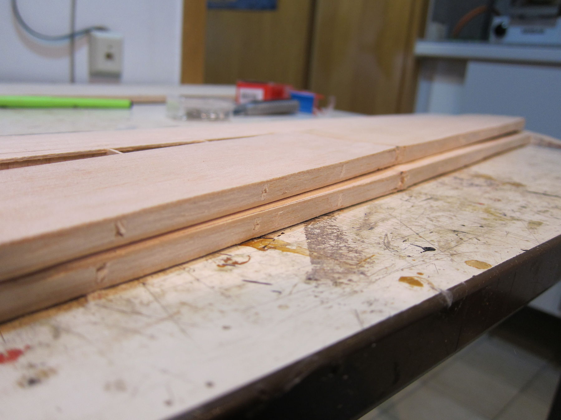 Das Malerkrepp hat das unter Spannung stehende Brett gut fest gehalten. Grüße