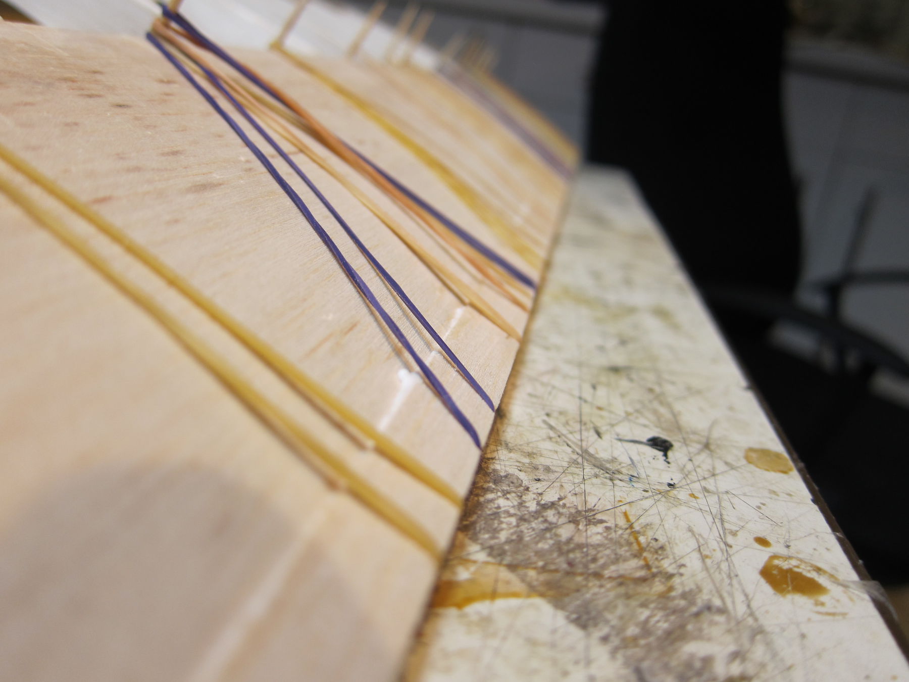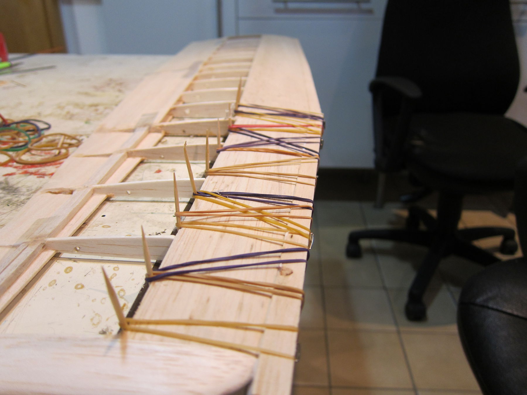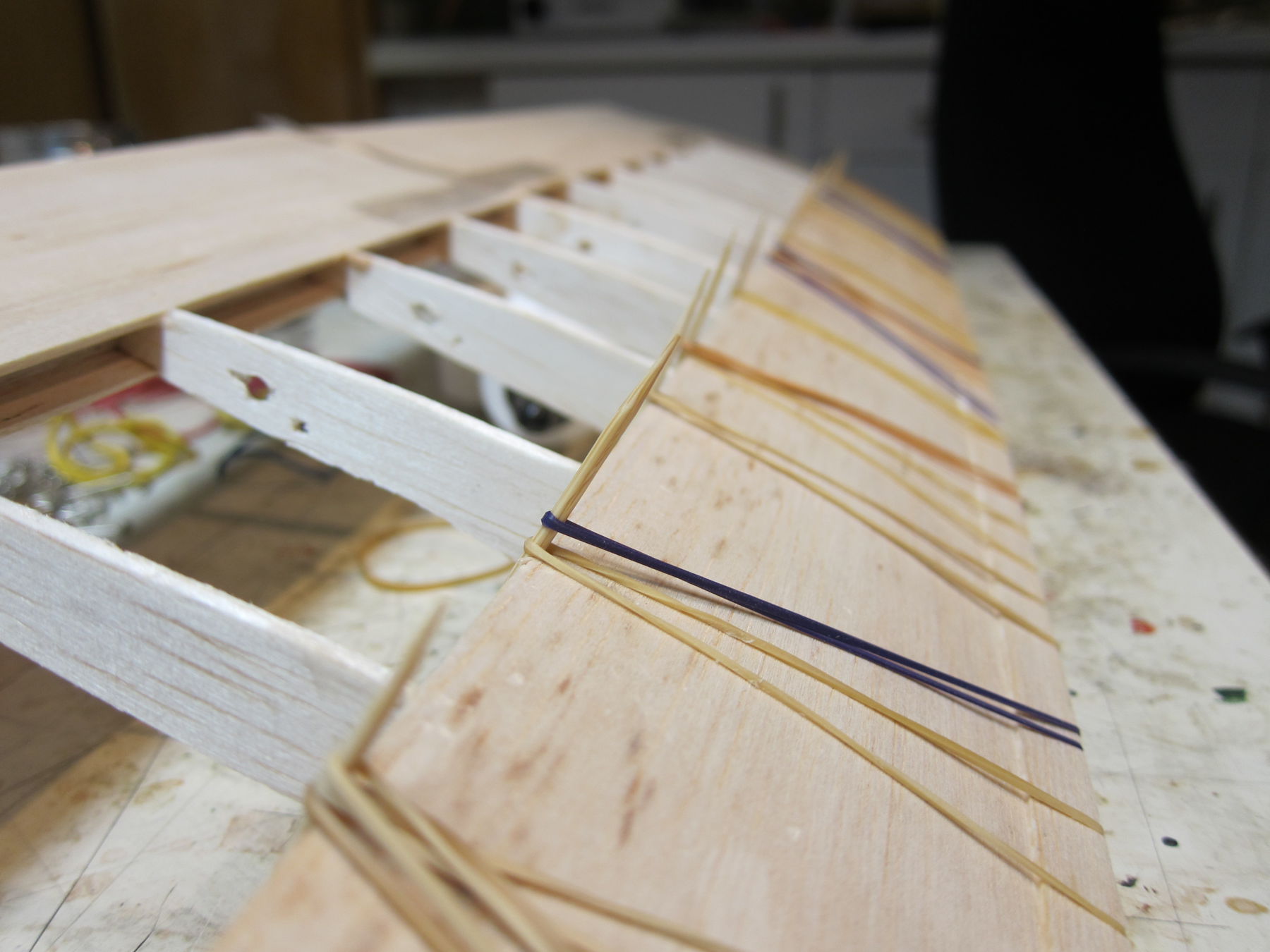 Und mit viel viel Gummi und Zahnstocherlen (... zu dünn, die drücken das Balsa sichtbar ein. Hätt ich mir ja denken könne. Hätte...)
