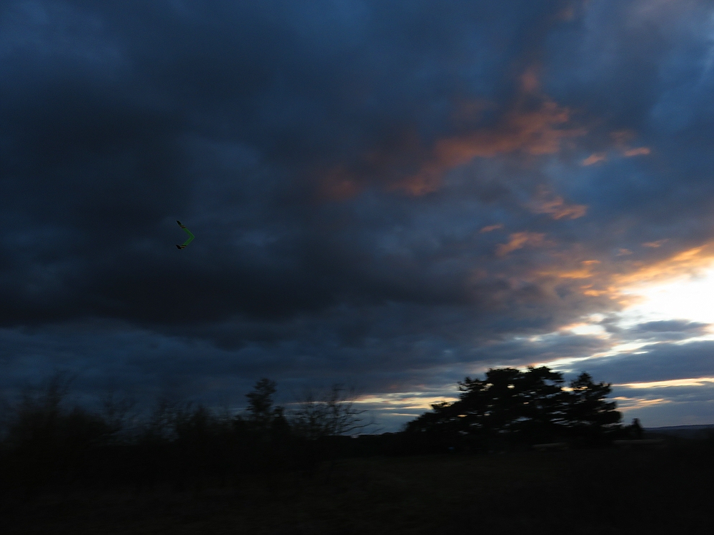 Heute schwacher Wind aus West und schwache Abendthermik, bei dem Wetter war das schönes Fliegen fürs verbinden von Einkäufen und Entspannung an der frischen Luft solange es noch möglich ist.