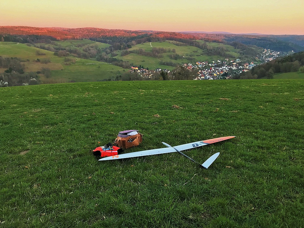 Das Tragen reichte gerade so für das Spessartsegler Pflichtprogramm, bei Looping und Rückenflug waren die Straßenlaternen im Ort schon eine Weile an.