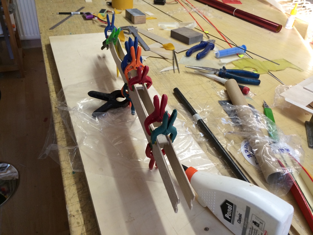 So Leute, es wird wieder gebastelt! Nach dem RES Wettbewerb in Dachau Stand für mich fest, das ich im September an der ersten RES DM teilnehmen möchte! Also brauch ich noch ein zweites Modell! Jetzt möchte ich aber mal testen wie leicht man den gezores bauen kann. Aktuell habe ich die Leitwerke gebaut und mit dem Flügel angefangen. Ich hoffe bis Montag Abend die Flügel rohbaufertig zu haben. Aktuelle "Leichtbau" Änderungen am Flügel: Rippen aus balsa, statt Pappel. 9mm CFk Pfeil Schaft anstelle von nem 10er rohr, die nasenleiste wird aus nem 3mm rohr gemacht, statt vollmaterial. Rumpf werde ich selbst einen zeichnen. Dieser wird ein Handgewickeltes CFk rohr bekommen, welches ich beim Konstrukteur von Pures erstehen konnte! Danke Sepp für das Super leichte und abartig stabile rohr! Der Rumpf wird ein kreuz Leitwerk bekommen. Die Jungs vom Baba Jaga meinten, das sie mit dieser Rumpfbauweise gut 60-70gr nur am Rumpf gespart haben. Naja, wir werden sehn. Wo ich jetzt noch am grübeln bin: Leitwerke mit Seil oder Draht anlenken?? Wie lenke ich die Klappe an?! So wie es beim Resolution war, fand ich es eigentlich perfekt.