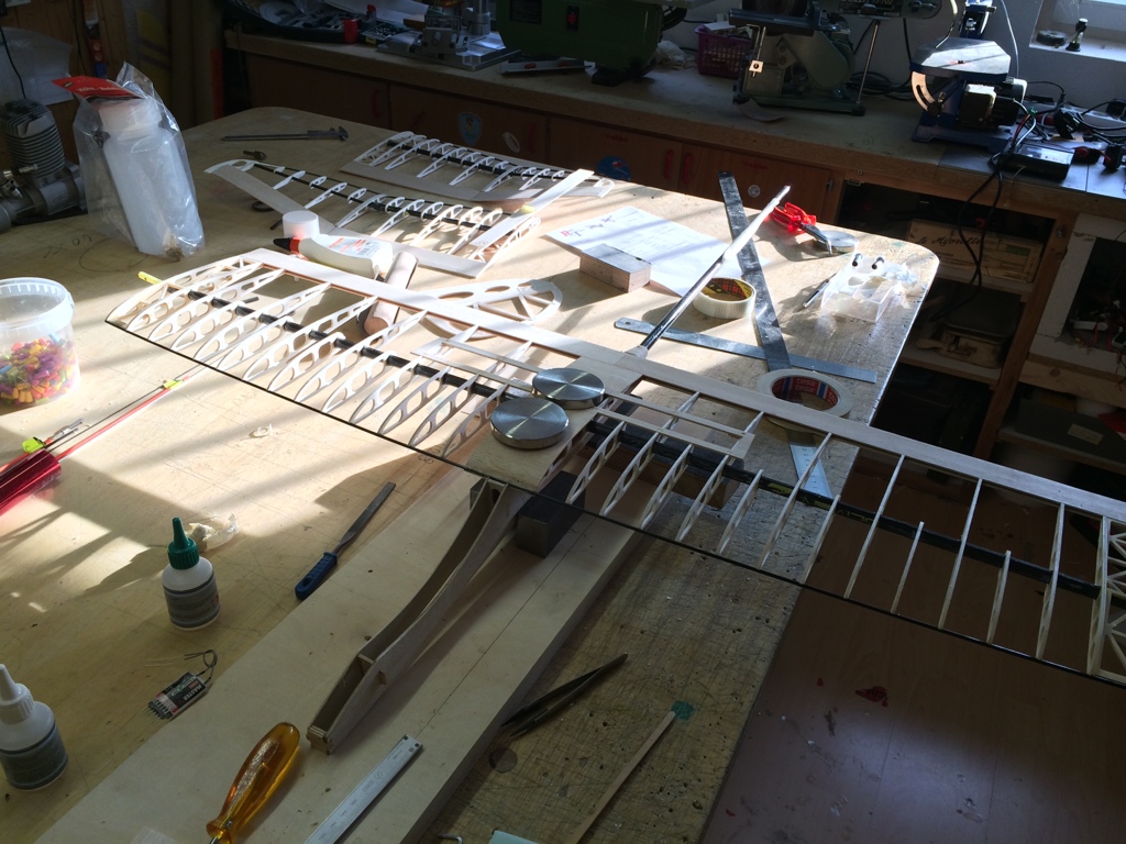Und da unsere Nurflügelform eh zum finishen bei meinem Vereinskollegen liegt, hätte ich sogar Platz im Keller.