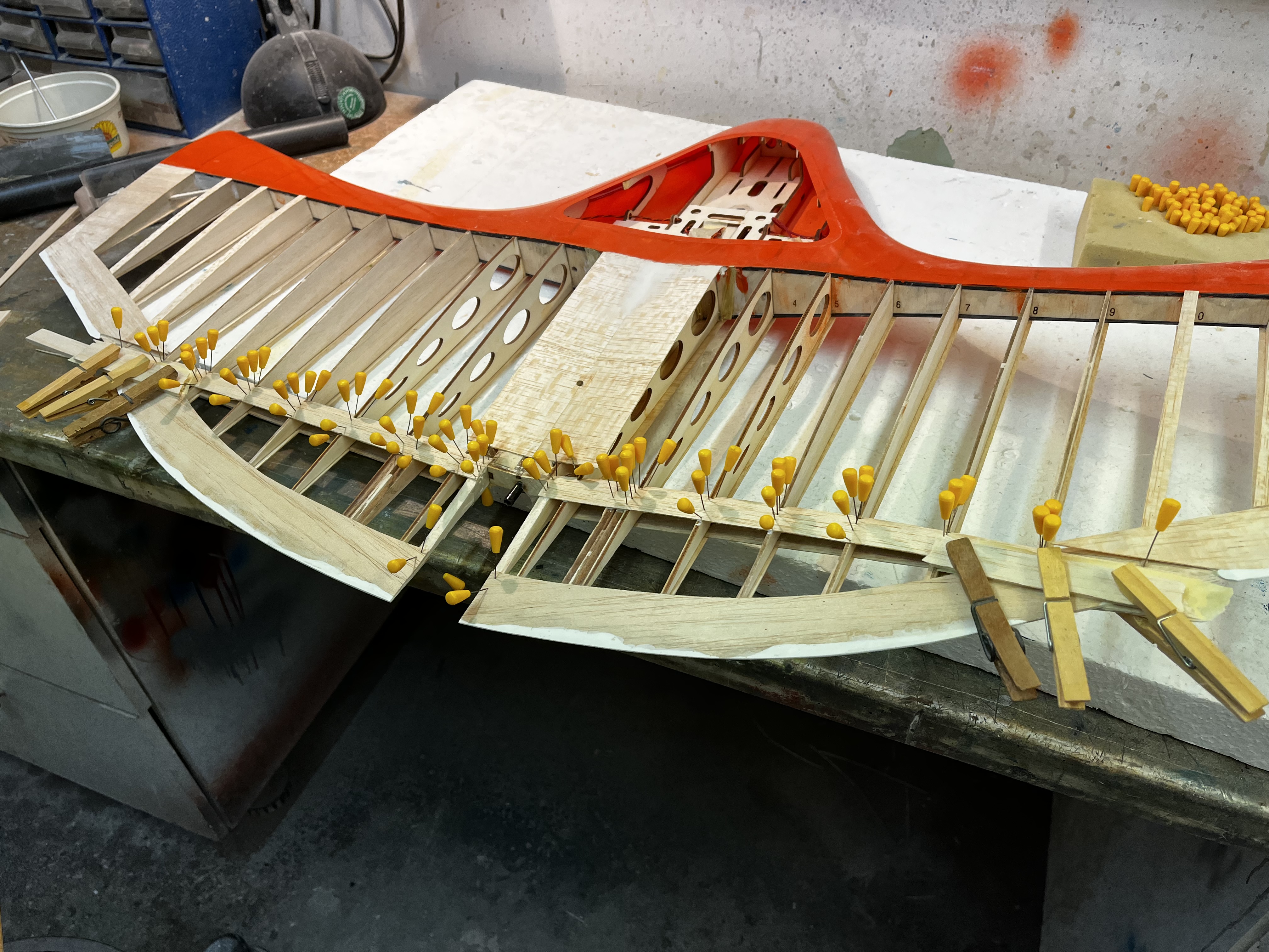 Ja am Ende ging es doch schneller und an einigen stellen habe ich auf supergenau verzichtet. Wenn man aber sieht wie die flügel mit dem QR in 1/4 kreisleistenausführung zu bebügeln gehen, das wäre f 99,9% der Modellbauer ein Ausschlusskriterium is schon echt durchgeknallt das Vögli.