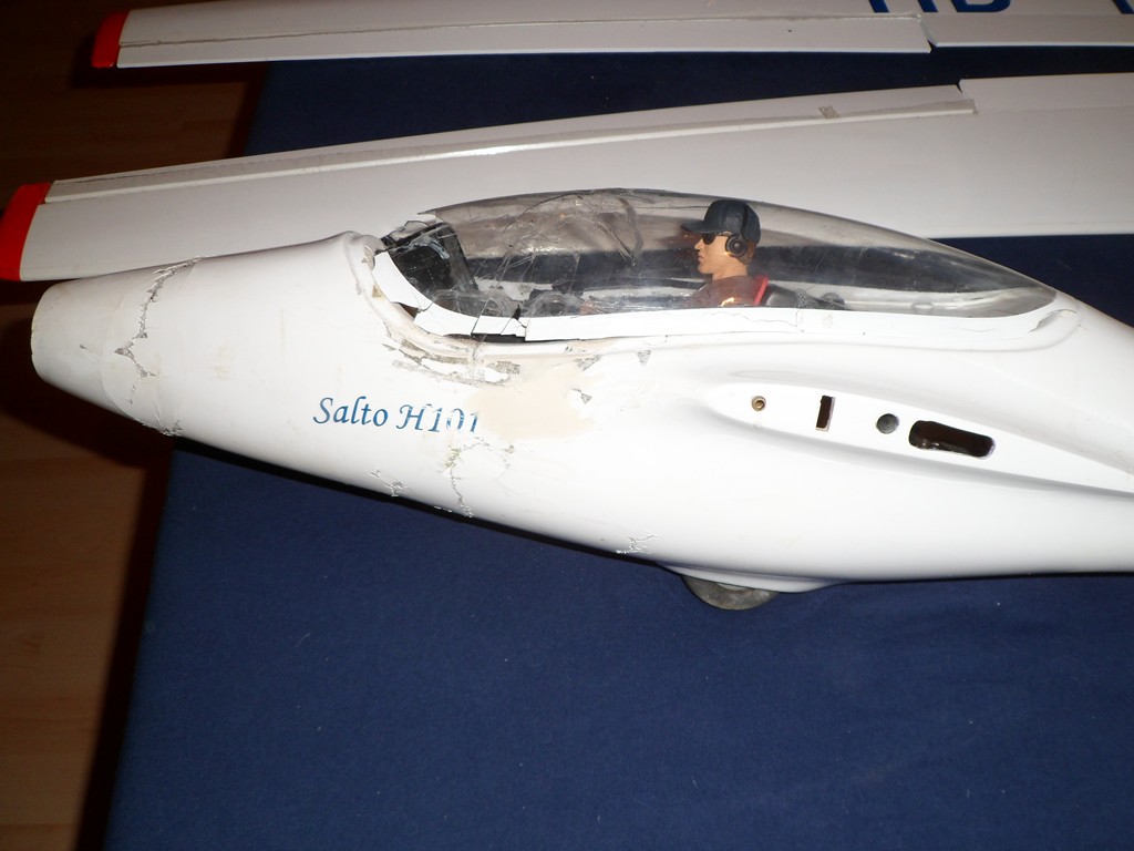 Hi Michel, wie wärs mit Haube weg schmeißen, als Ersatzteil neu bestellen und in der Wartezeit den Rumpf außen mit Plätzlitechnik und mit Innenverstärkung reparieren? ......dabei unbedingt wieder eine schöne Nase anformen!McLaut hat geschrieben:Vorschläge???