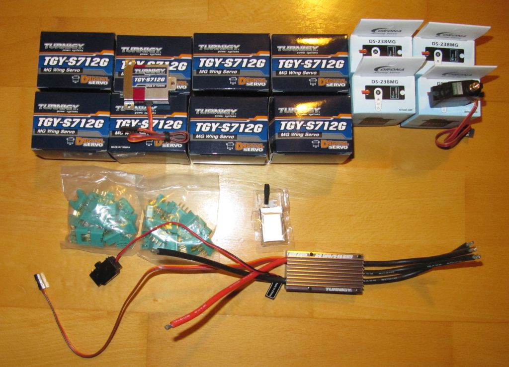 Der Regler ist mein 5. dieser Baureihe und er wird in den Joker kommen wie 4 der 712er. Die Coronas kommen in Ronas Aris, der Rest sind Verschleißteile, also MPX-Stecker und eine Lipozelle für Spaßfliegerle ala Arcus Airy