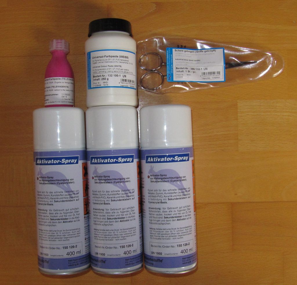 ...und für Rona zum Spielen hab ich Magentafarbpaste mitbestellt. Dann kann sie sich endlich ihren schon so lange ersehnten rosa Rumpf laminieren