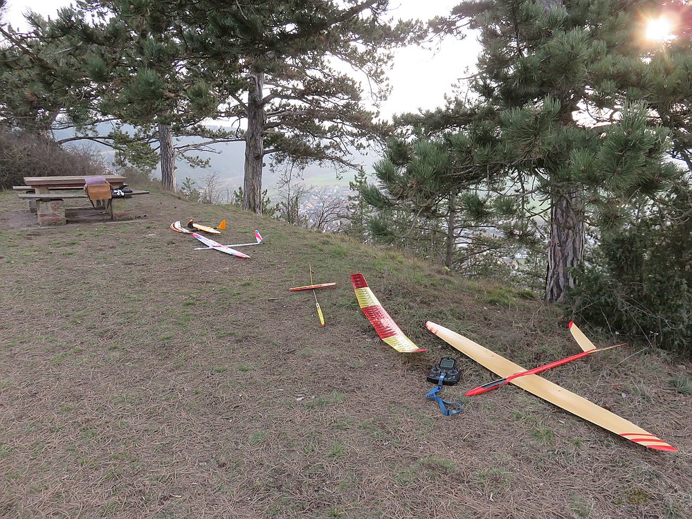 Jörg hat seine neuen Lee- Flieger mutig zum ersten mal vor den Hang geschmissen und mein alter Erwin vom Azoren-Urlaubs-DS-Bruch 2018 hat endlich wieder neue Flächen und durfte damit die ersten Einstellrunden vorm Hang und im Lee drehen.