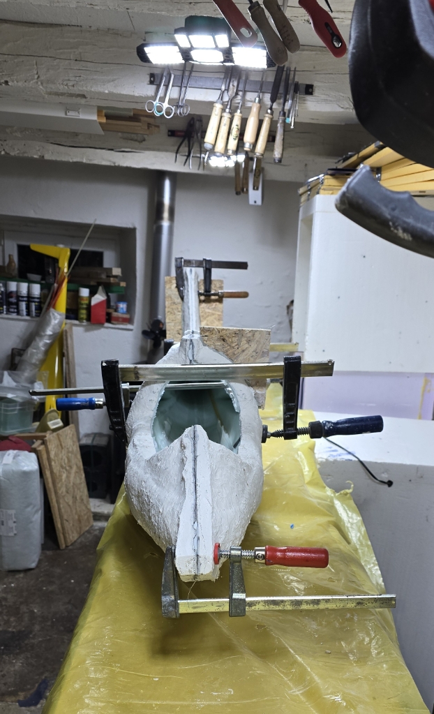 Diese Werkstattsaison werden am Ende hier hoffentlich insgesamt 3 Förmchen entstanden sein. Das nächste wird die Libelle aus dem überarbeiteten Urmodell von Johannes. Geplant ist am 1.3. den ersten Rumpf dorthinein zu laminieren.