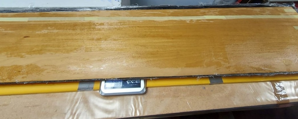 Achso: Ja, das hat's deutlich Harz durchgedrückt, aber das ist auch nur 0,5mm Ayous-Furnier, das Gelege darunter war echt nur gerade eben so durchtränkt, aber, der Vorteil von XPS, selbst da drückt es halt alles nur nach oben raus und nichts unsinniges in den Kern...