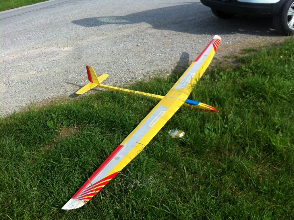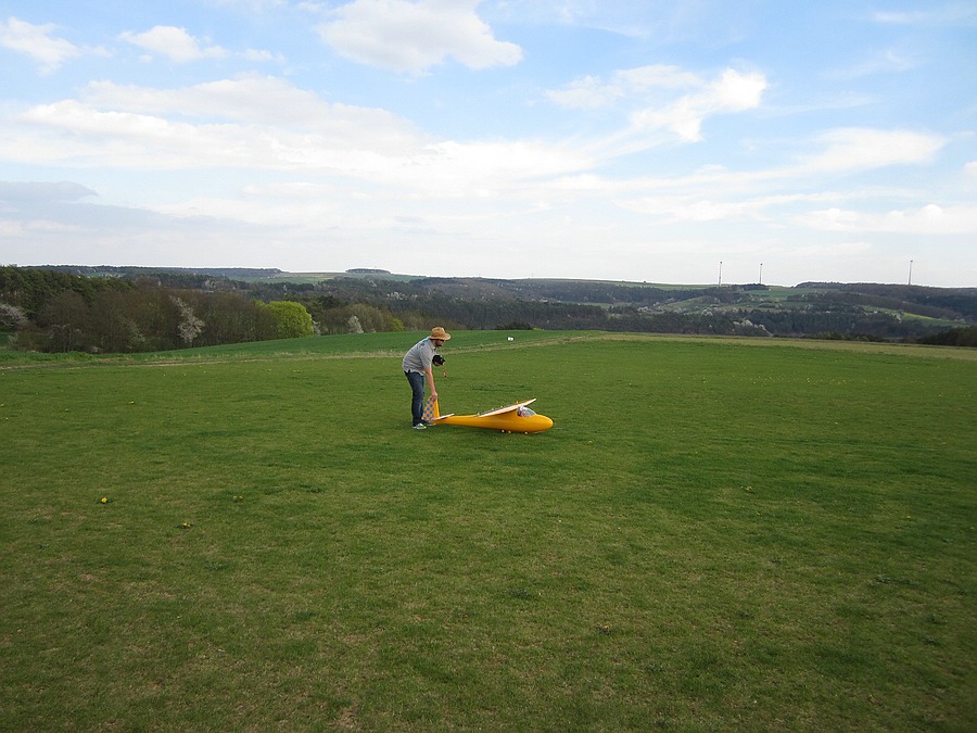 Leider nur ein Bild vom Boden und mit zusammen gezogenem Fluggerät, aber das hole ich morgen alles nach. :thumbup: