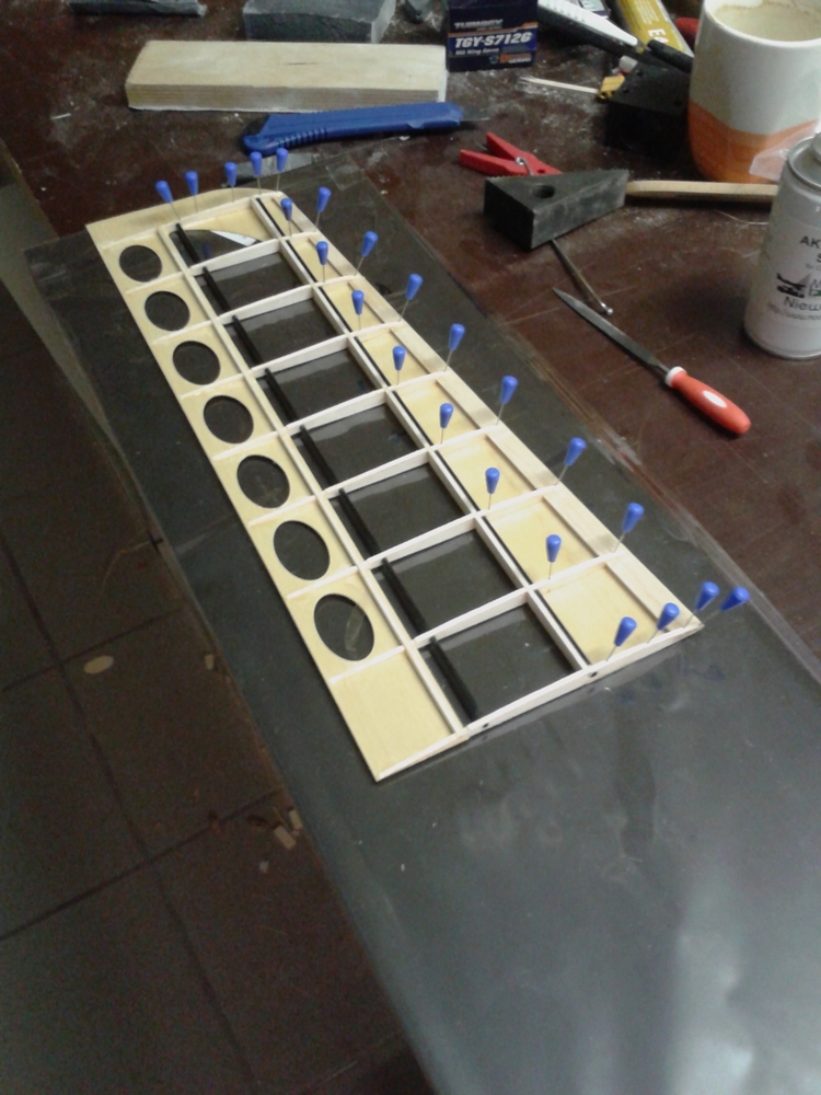 gestern habe ich mein Leitwerk zusammen geklebt. Diese hatte ich zuvor auf 1,5mm Balsa geändert. Die Arbeit hätte ich mir sparen können. Mit den 2mm bei Michels Leitwerk war es noch easy zu bauen und ausreichend stabil. Das 1,5mm Balsa ist so empfindlich beim zusammenbauen und eine Gewichtsersparnis ist nicht festzustellen gewesen.