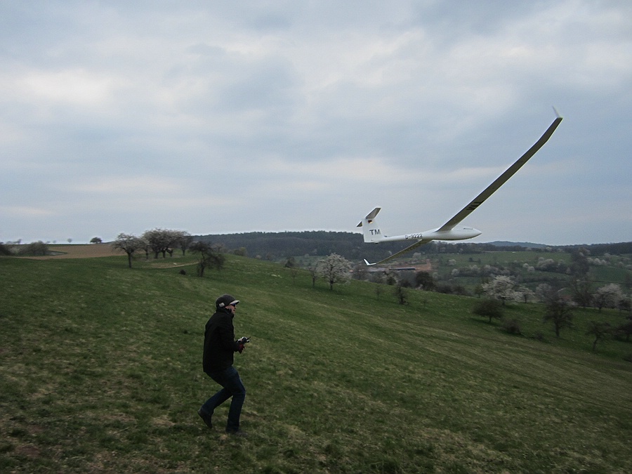 War aber trotzdem eine lustige Fliegerei die sehr viel Spaß gemacht hat. Ares fliegt auch noch bei 4 Bft ohne Ballast und Tobis Ventus ist laut seinem Dad viel zu weich. Elmars Flieger wachsen inzwischen auf Bäumen, der Gee-Bee-Segler Lo 100 kann bei den Bedingungen mehr als eine verhungerte Runde fliegen und manche Leute fliegen an einem fremden Hang gerne abseits der Einheimischen und unterhalten sich nicht mit den Kollegen....hier meine Bilder: Danke für die Alteilnahme wegen meinem großen Baby, das wird schon wieder...und jetzt schau ich mir die Videos an, ich glaube das lohnt sich heute