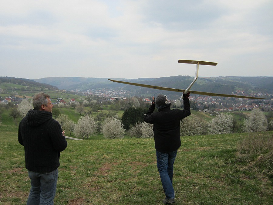! Leider hatte Uwe nicht so viel Glück. Aber so ein Modell bei dem ( teilweise sehr bockigen ) Wind aus der Hand zu werfen..... Da braucht`s schon richtig Eier!!!