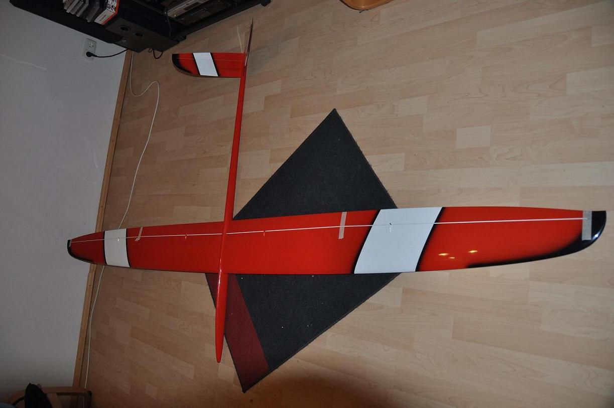 Geile Farbe dein F3B Steckerlflieger. Erinnert mich an meinen Dingo, da dauerte die "Schwangerschaft" nur 6 Monate.
