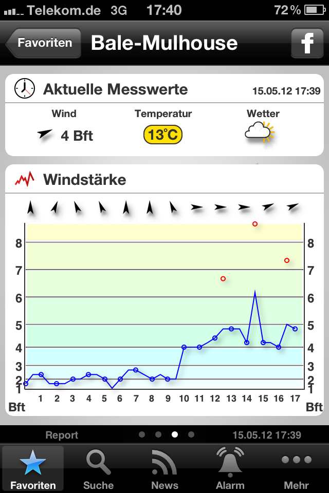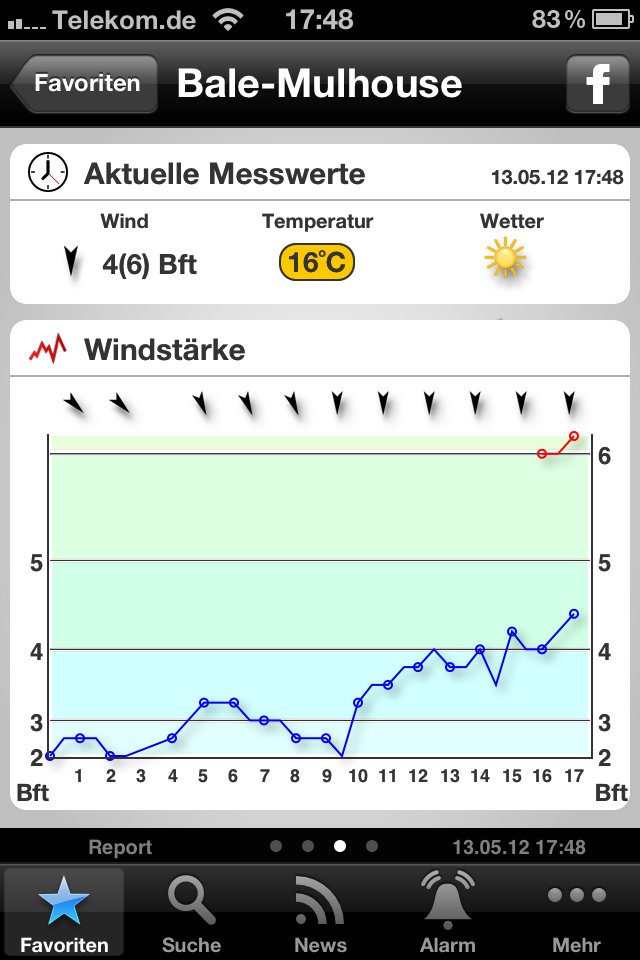das ist Windfinder Pro und es ist die aktuell gemessene Windstärke vom Flughafen Basel der etwa 30km von dem Hang entfernt ist !