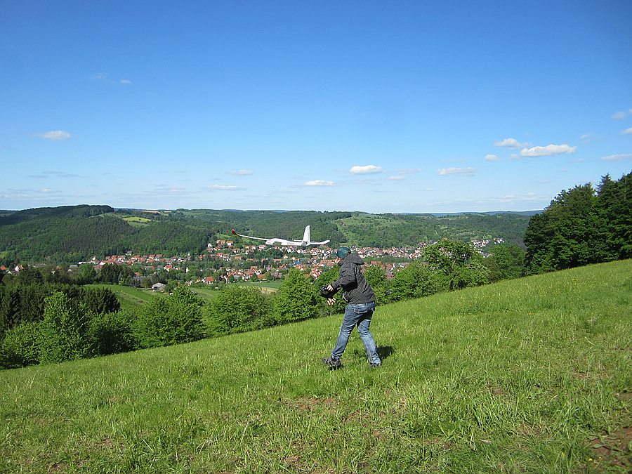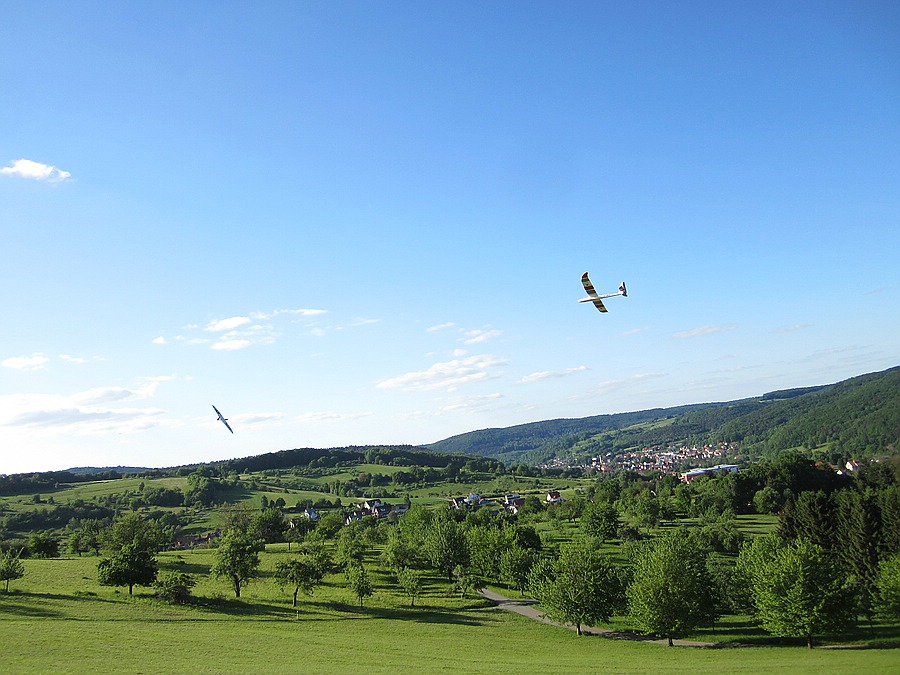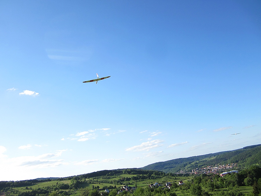 Ich war heut`erst gegen 18.00 Uhr am anderen Nordhang (konnte nicht früher) . Wir hatten noch ein paar schöne Ablösungen in der Abendthermik bis 19.00 Uhr ausgekreist. Niklas hat seinen ersten Querruderflug mit Bravour absolviert und dabei einen tollen Thermikflug hingelegt! Alles in allem ein später, kurzer aber sehr erfolgreicher Flugtag :)