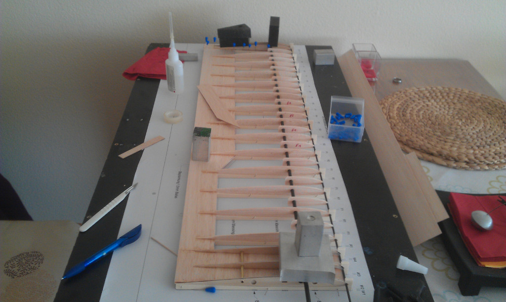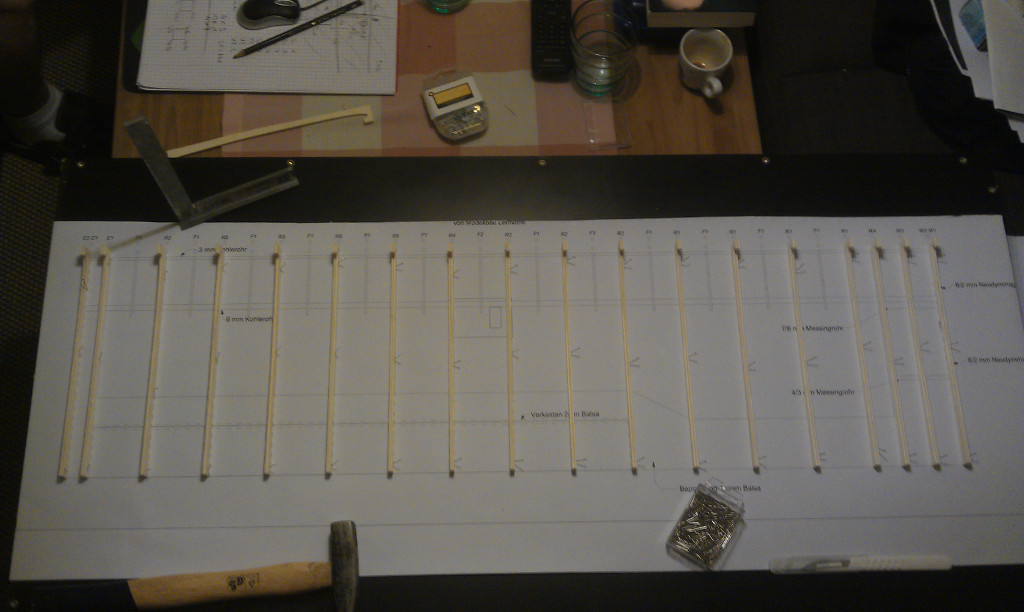 Naja ist erst mein zweiter Rippenflügel und der Erste der beplankt wird. Und wenns nicht fliegt kann ichs ja auf die Nurflügel schieben :P