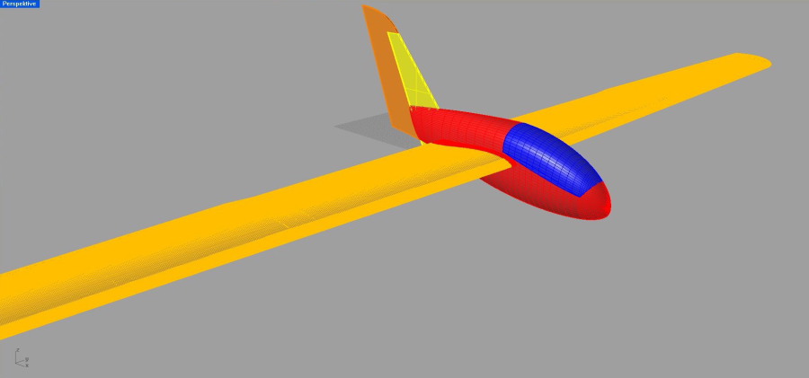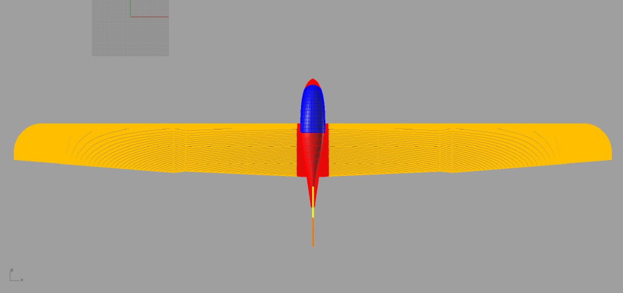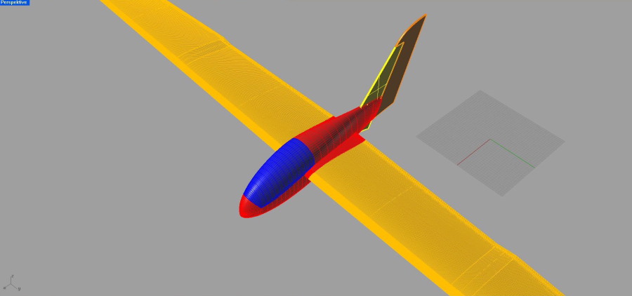 Bei dem Entwurf vom Rumpf habe ich ein wenig von einer Nemere abgekupfert. Die Flächengeometrie hat aber nichts mit der Nemere zu tun, diese wurde von mir gestaltet und ich hoffe das sie auch Optisch zum Rumpf passt???