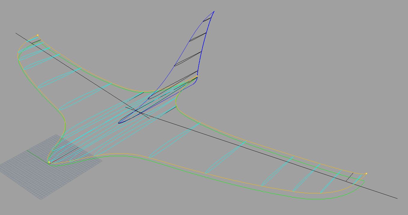 Nachdem ich von Uwe die finale Auslegung samt Simulations- und Profildaten erhalten hatte, konnte ich mich an die Arbeit im CAD machen. Eigentlich -so dachte ich- sollte das in ein, maximal zwei Tagen abgeschlossen sein. Aber ich musste feststellen, dass so eine Konstruktion nicht nur in der Auslegung sehr anspruchsvoll ist, sondern danach eben auch im CAD. Die einzelnen Profile dürfen hier nämlich nicht an Nasen- bzw. Endleisten ausgerichtet werden, sondern exakt an der Scharnierlinie. Klingt erstmal auch nicht kompliziert, ist in der Umsetzung jedoch deutlich arbeits- und zeitintensiver. Überraschenderweise gestaltete sich die Trennebene als sehr spannendes Detail... Nunja, ich habe hier wirklich viel gelernt und beim nächsten Mal geht´s sicherlich schneller.
