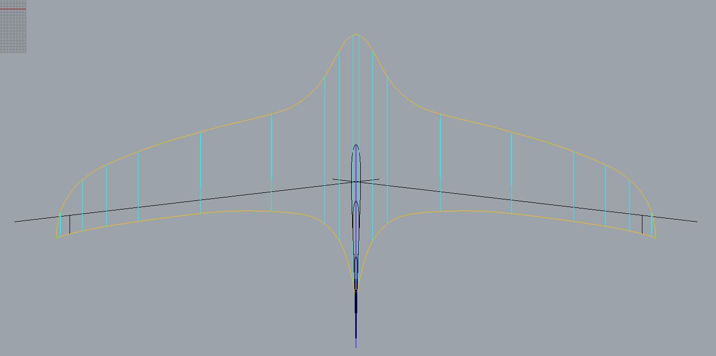 Ich konnte in den letzten Jahren zwar einige Erfahrung bei meinen F3f-Projekten Solaris und Thor sammeln, allerdings habe ich von Nurflügeln und deren Auslegung absolut keine Ahnung. Deshalb kontaktierte ich im Februar 2015 Uwe Heuer und bat ihn um seine Hilfe. Uwe war schnell Feuer und Flamme für meine Idee und hatte sogar schon etwas in Petto. Ursprünglich als etwas größeres DS-Modell geplant, bekam ich von Uwe gleich mal einen ersten groben Entwurf für einen kleinen, schnellen Hangrocker zugeschickt. Die Screenshots gefielen mir sehr gut und somit konnte Uwe sich an die genaue Auslegung und Profilentwicklung machen. Bei derartigen Konzepten ein durchaus anspruchsvolles Unterfangen.