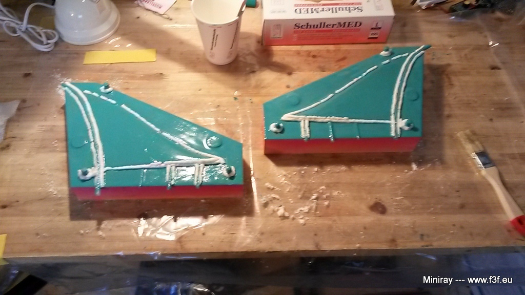 Aktuell härten die beiden Hauptteile am Urmodell gut durch, ehe sie am kommenden Wochenende abgenommen werden. Hoffentlich geht hierbei dann alles gut, denn gerade die Anformungen für das Leitwerk stellen eine kleine Herausforderung dar…