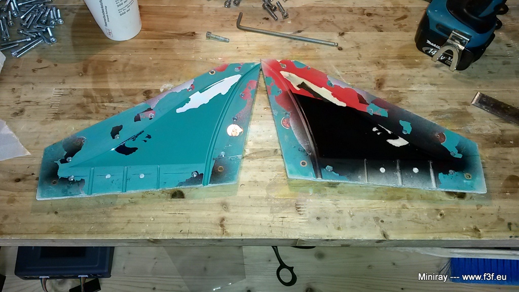 Mit den Negativen bin ich sehr zufrieden. Sie weisen keine Fehlstellen auf und auch die Oberfläche ist absolut OK, wenngleich ich sie noch polieren werde. Das hatte ich sowieso vor, da man dadurch beim SW18 noch wirklich viel Glanz rausholen kann. Was mir nicht so gefällt, sind noch spürbare Frässpuren im Bereich des Leitwerks. Im Urmodell sind diese nicht so aufgefallen, im Negativ spürt man sie schon... Nunja, gibt schlimmeres und fliegen wird der MiniRAY deshalb trotzdem :D