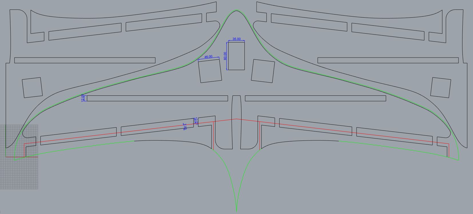 Grün ist die Original-Kontur; Rot die Scharnierlinie: