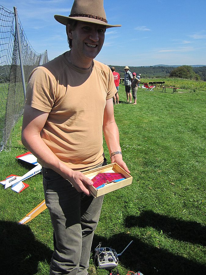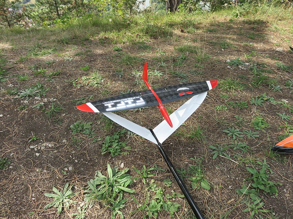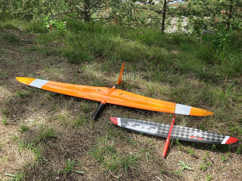 Nach kleiner überarbeitung ( etwas V-Form und zweiteiliger flügel, neuer Rumpf, größeres SLW) haben wir anfang Juli den neuen Formensatz aus plexiglas gefräst und 2 modelle in unzerstörbarer Rhön-Ausführung gebaut.