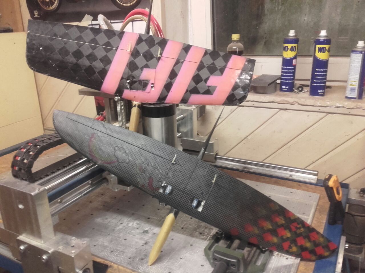 Es kam dann noch ein GFK/CFK-Rumpf dazu, der in billigen MDF-Formen laminiert wurde.