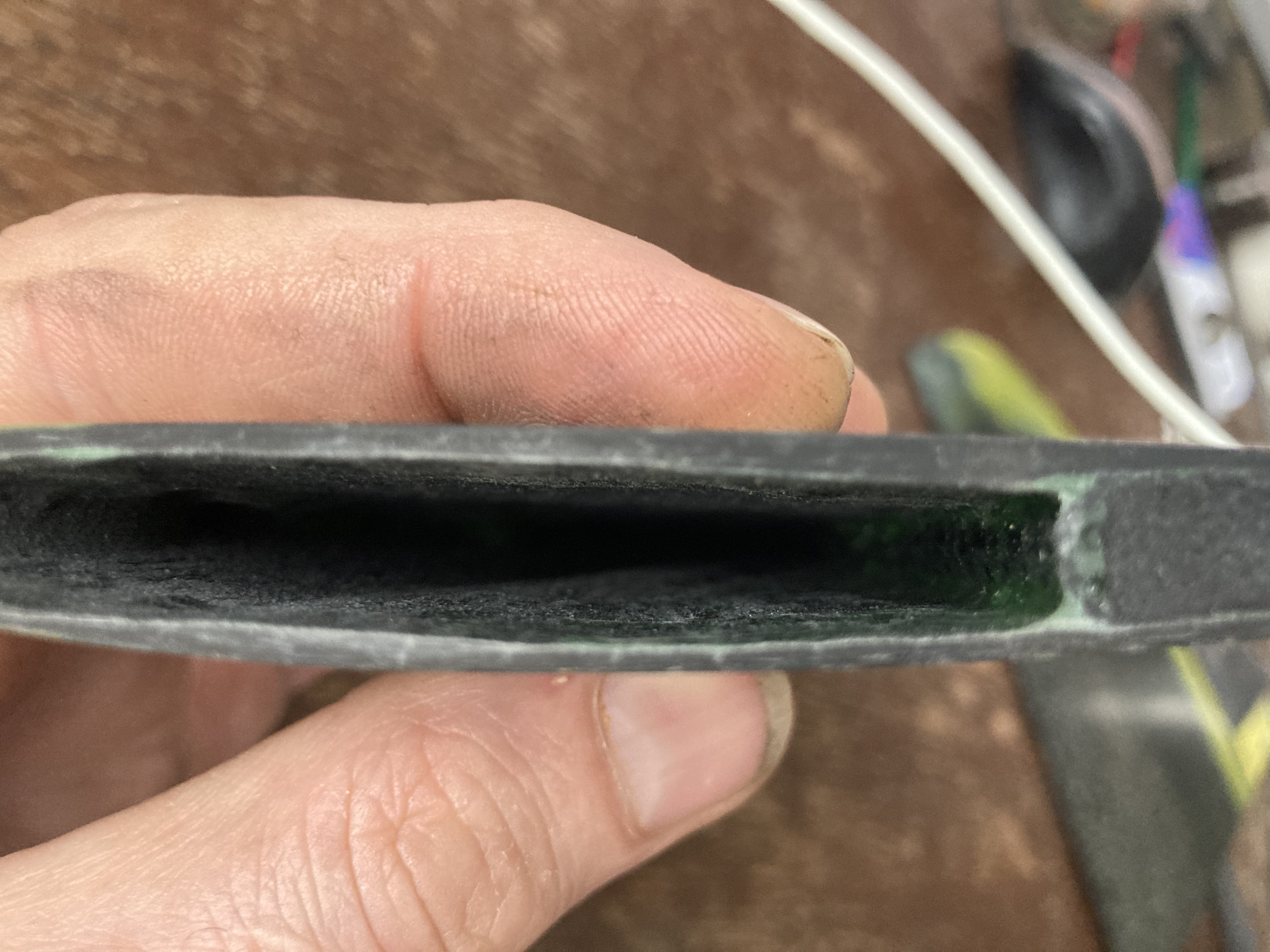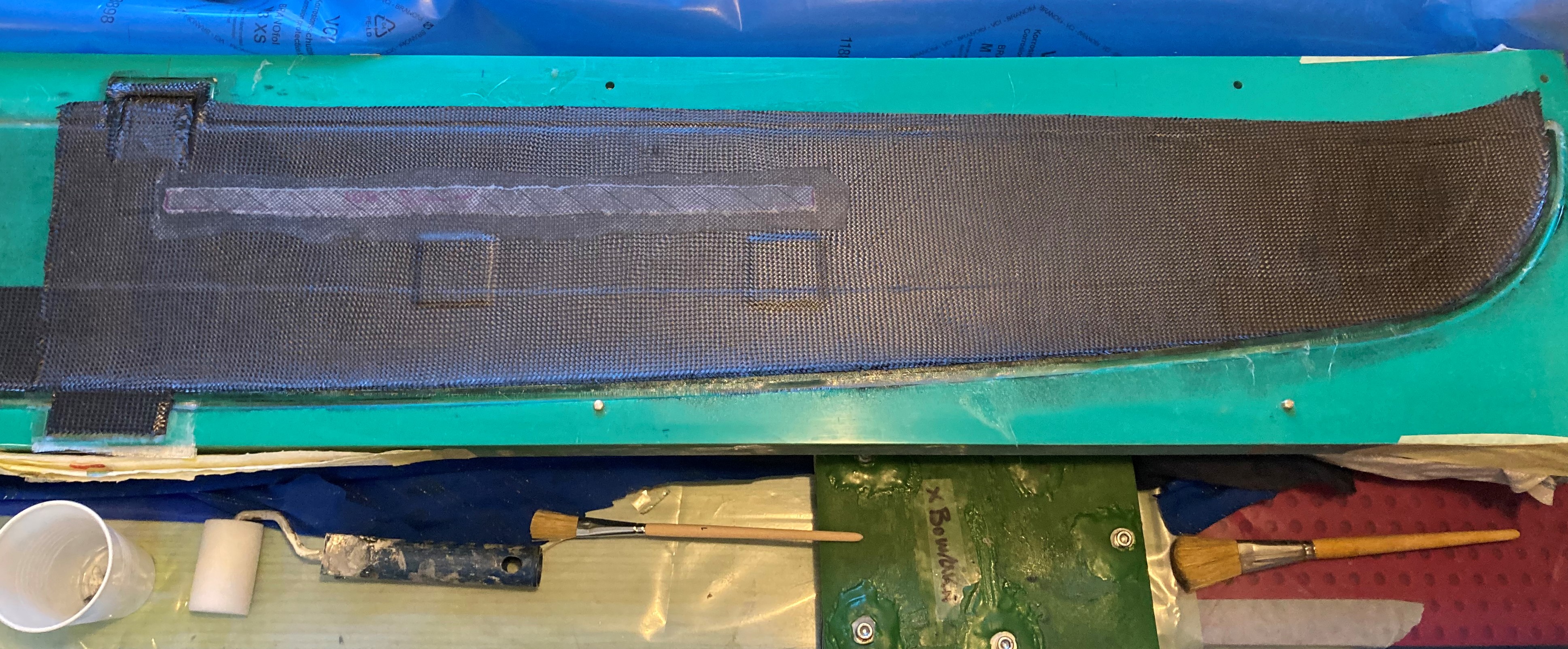 - Diese "Harzkannte" zum Holm hin kann ich nur verhindern wenn ich das Gewebe wieder richtig trocken rolle bevor ich es in die Form schmeiße. Wenig Harz = keine Epoxi Sammlungen möglich