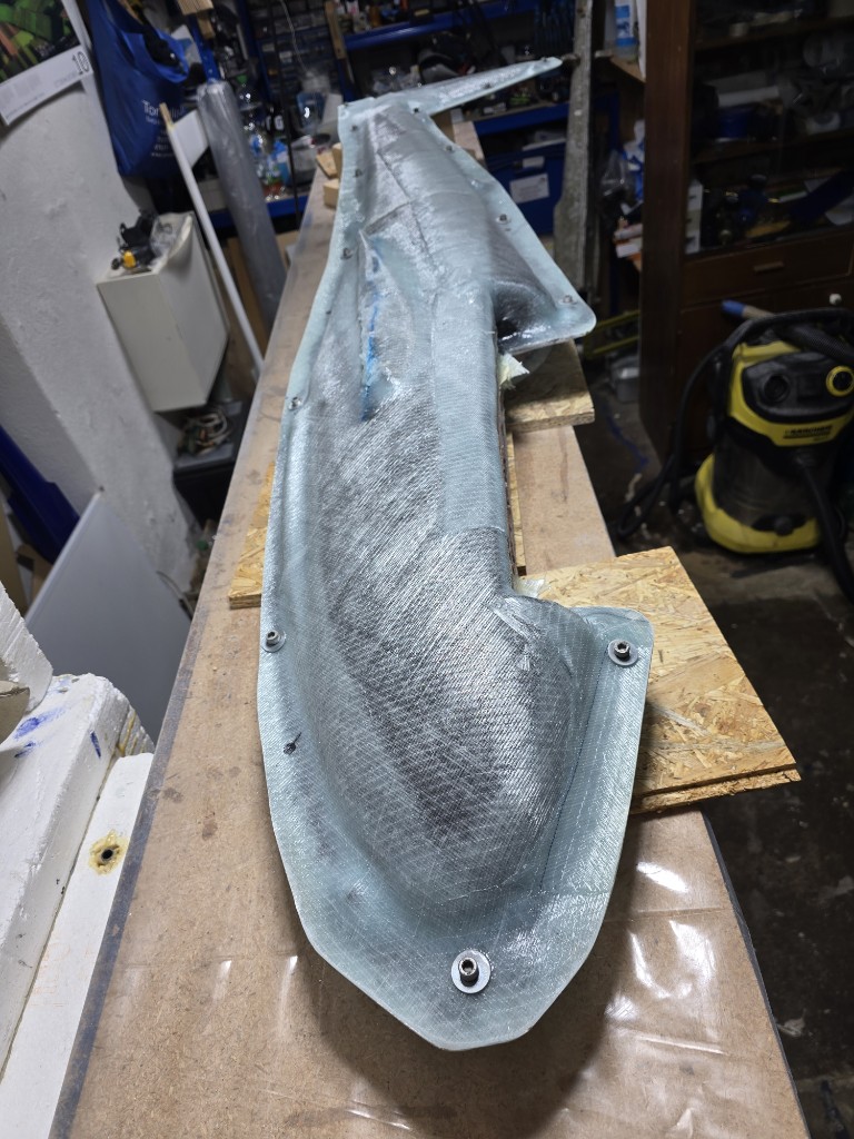 Geplant war mal wieder eine Highspeedaktion, wie immer, wenn Tobi den weiten Weg von Köln zu mir auf sich nimmt. Diesmal also innerhalb eines Wochenendes eine Form fertig zu laminieren. Reaktionszeiten von Harzen und Trennwachsen wurden vorher per Dekret ausser Kraft gesetzt und es ging los.