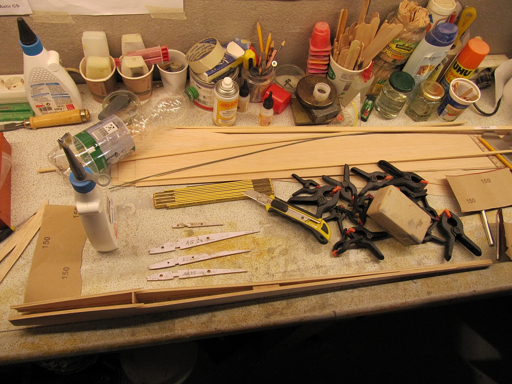 Achso, ja, richtig, ich klebe den Flieger fast komplett mit Weißleim, passt irgendwie besser zum spirit der Holzklasse :wink: