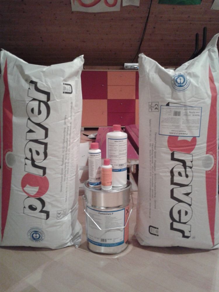 ....bei kleinen Formen bleibt es nun dabei, bei großen Formen sind dann noch mindestens 2 Harzansätze für Füllung und Formengewebe Außenseite notwendig.