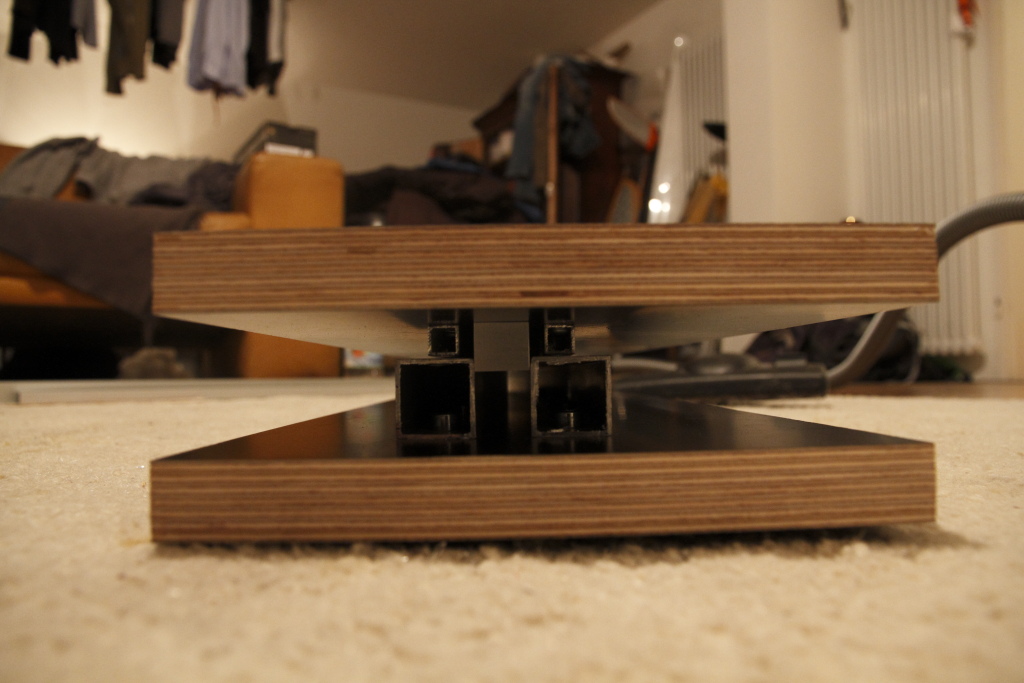 So, hab mich umentschieden. Jetzt wird erstmal der untere Spalt zwischen Alu und Platte beseitigt, damit der Verbinder schön aus der Form springt....