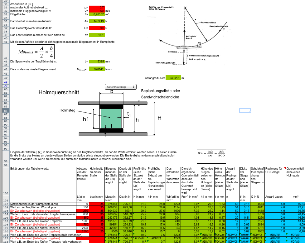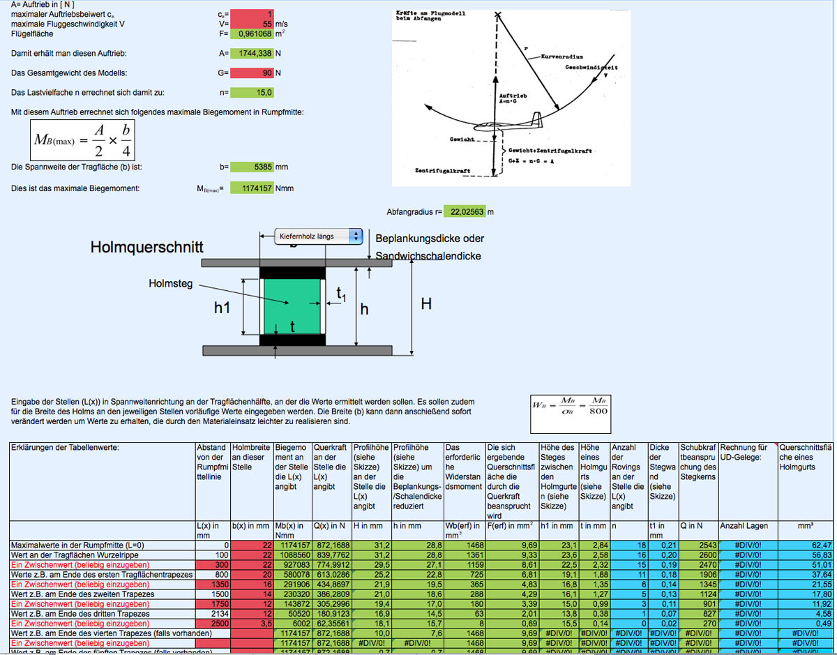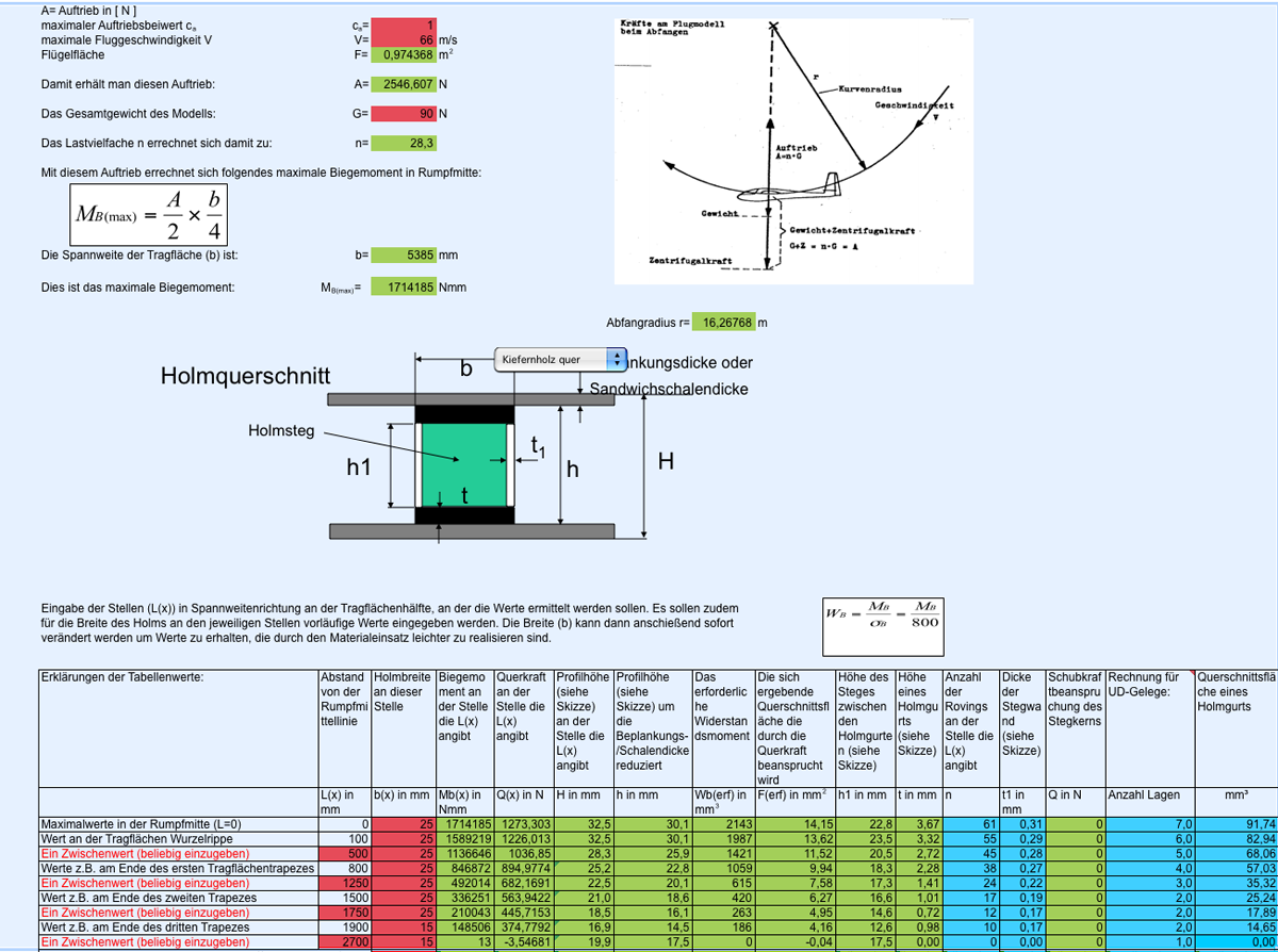 Geflogen wird überwiegend am Hang im Schwarzwald bei mittleren Bedienungen. Die ASG soll dabei mit dem Stellen der Klappen alle Fluglagen angenehm und unkritisch meistern (die Eierlegendewollmilchsau gibt's ja net). Das wichtigste dabei ist das Kreisflugverhalten, denn mit einem Segler ist man ja gewohnt die meiste Zeit mit dem Hochkommen beschäftigt. Dann kommt das Ablassen. Hier sollte die Anna schon Ablasser aus 300 - 400 m meistern. Und hier möchte ich zunächst einhacken und benötige etwas Unterstützung hinsichtlich der Holmauslegung und dem Flächenaufbau hinsichtlich der CFK Einlagen, da ich diesbezüglich keine Erfahrung hab und nicht weis was alles an Material in den Flügel muss, damit die Flächen meinem Anspruch gerecht werden.